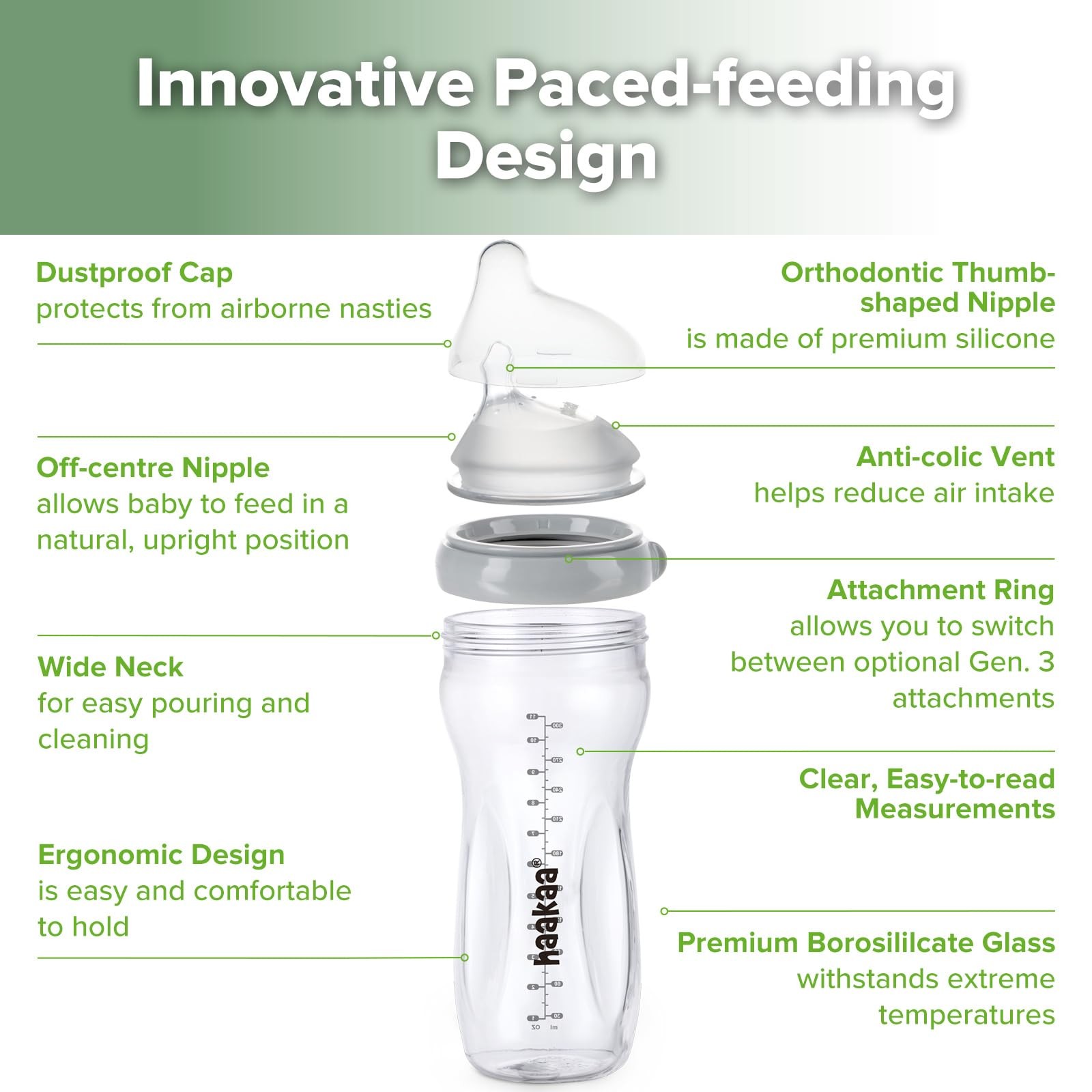 как выглядит Gen.3 Natural Glass Baby Bottle 11oz - Wide Neck Anti-Colic Variable Flow Nip... фото