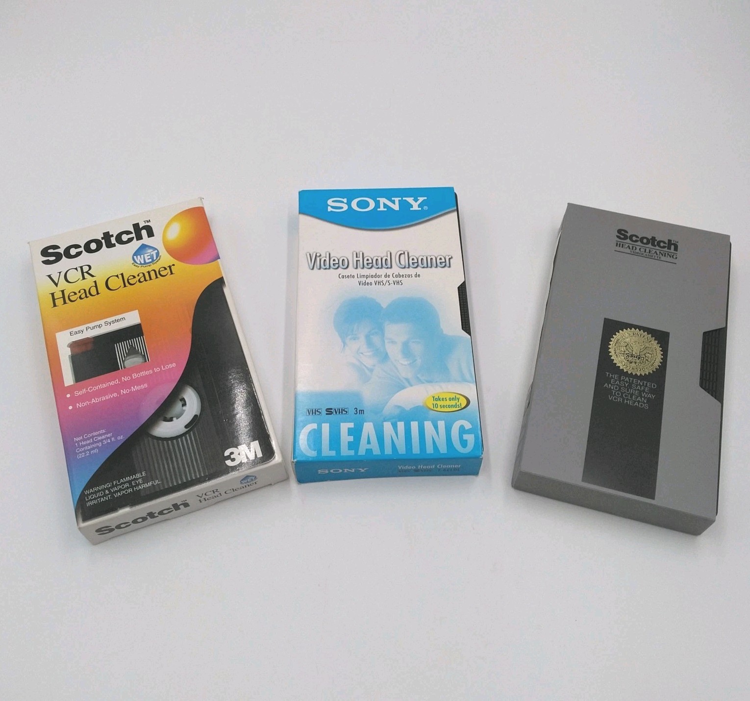 VHS VCR Video Head Cleaner Tape Lot of 3 Sony Scotch Untested