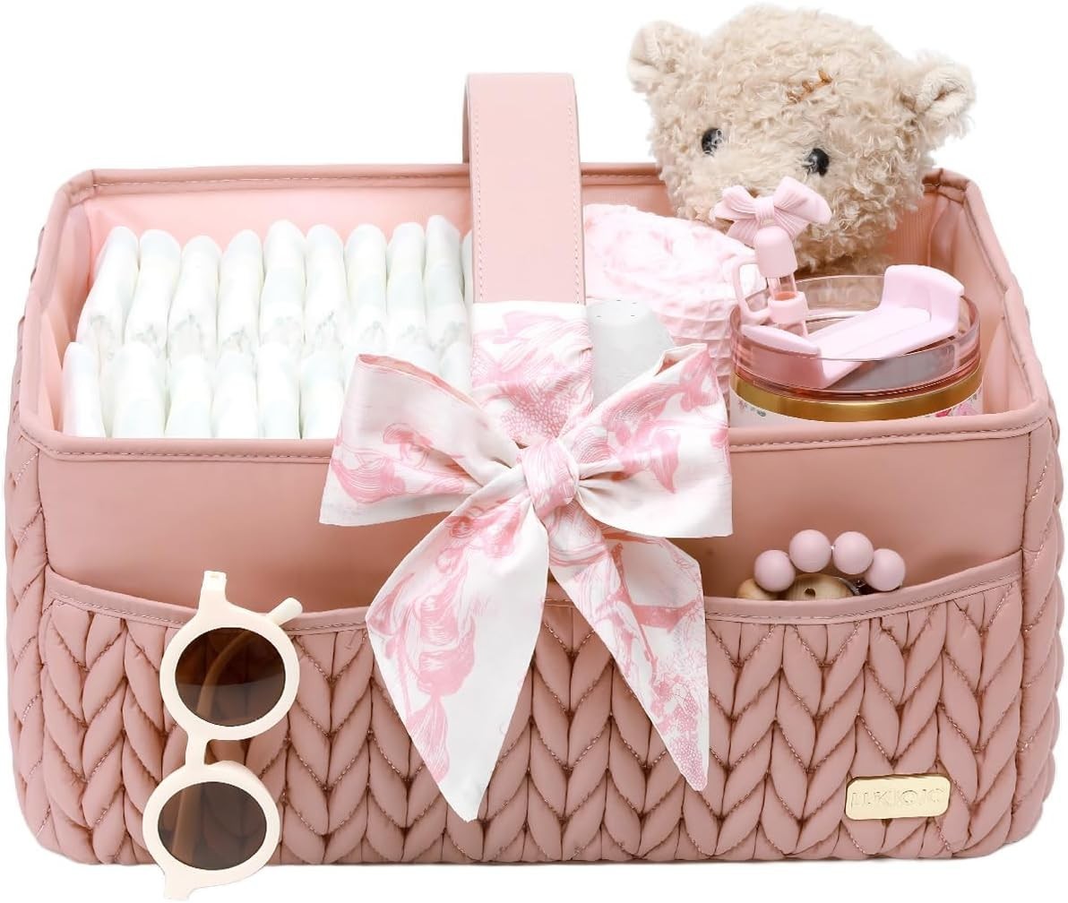 Luxurious Baby Diaper Caddy, Nursery Storage Basket for Newborn Boy and Girl,...