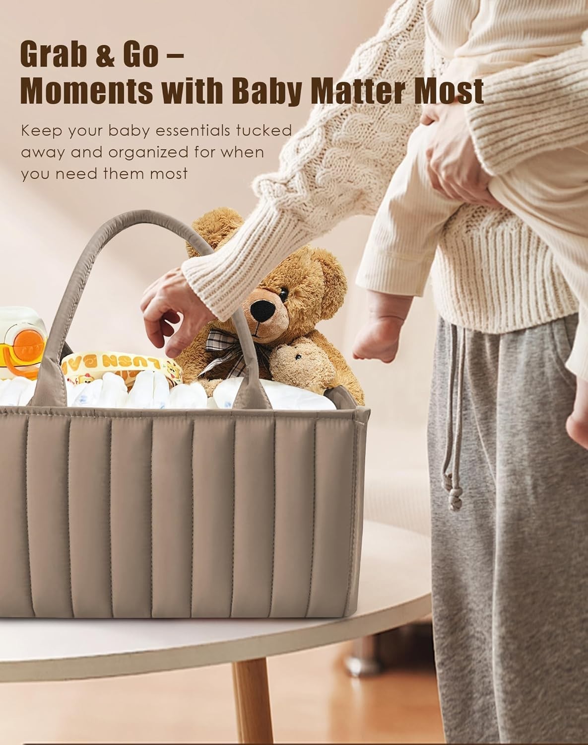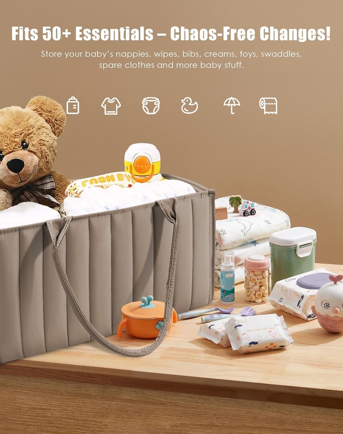 2-Pack Quilted Diaper Caddy Organizer Puffer Style Nursery Storage Bins ...