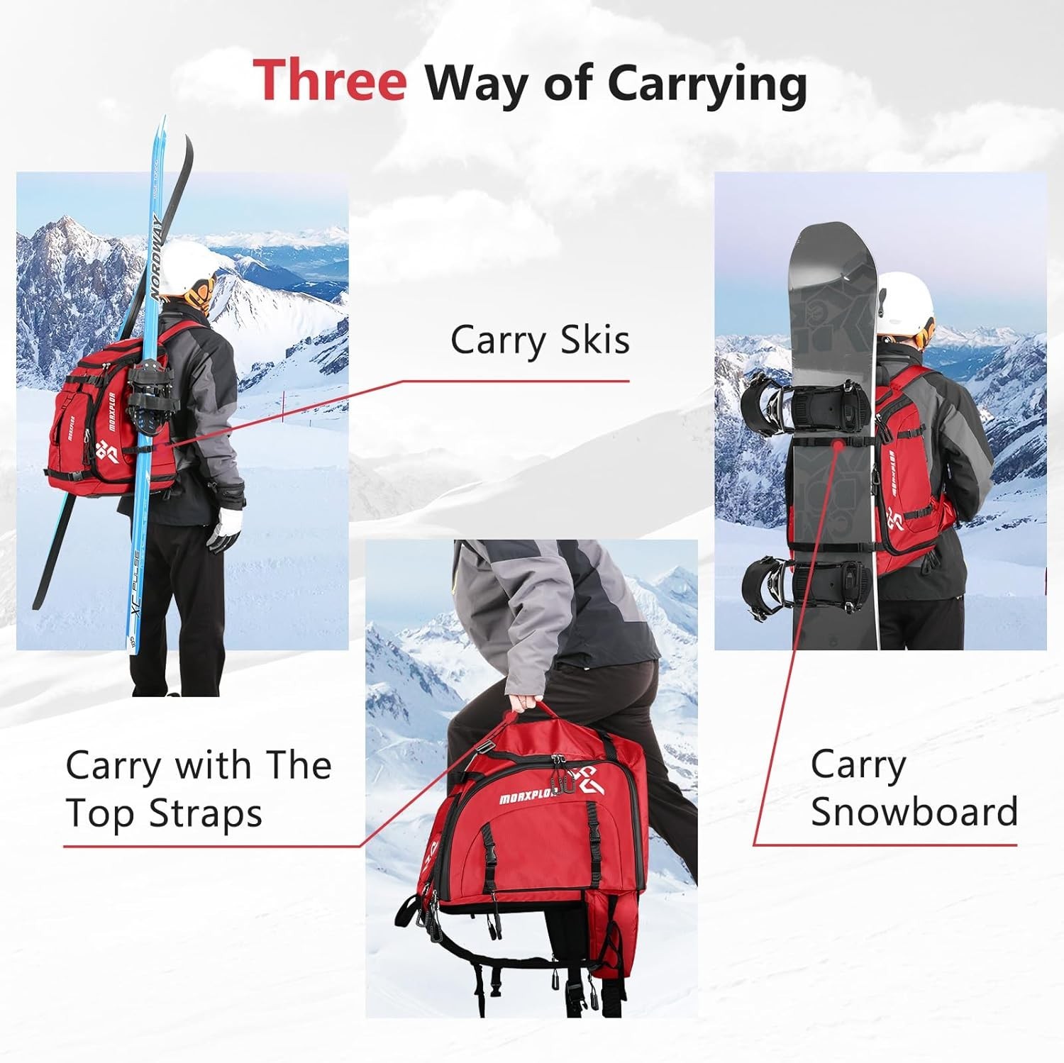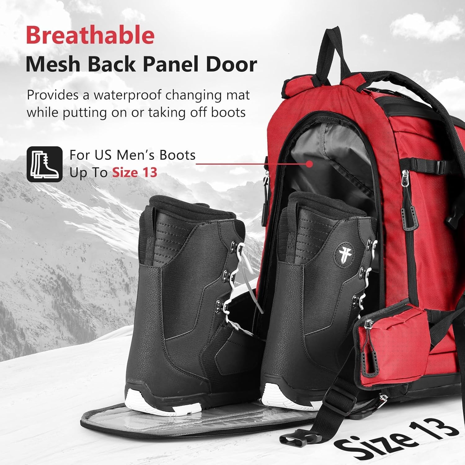 Ski Boot Bag 65L Padded Waterproof Ski Travel Backpack Gear Accessories