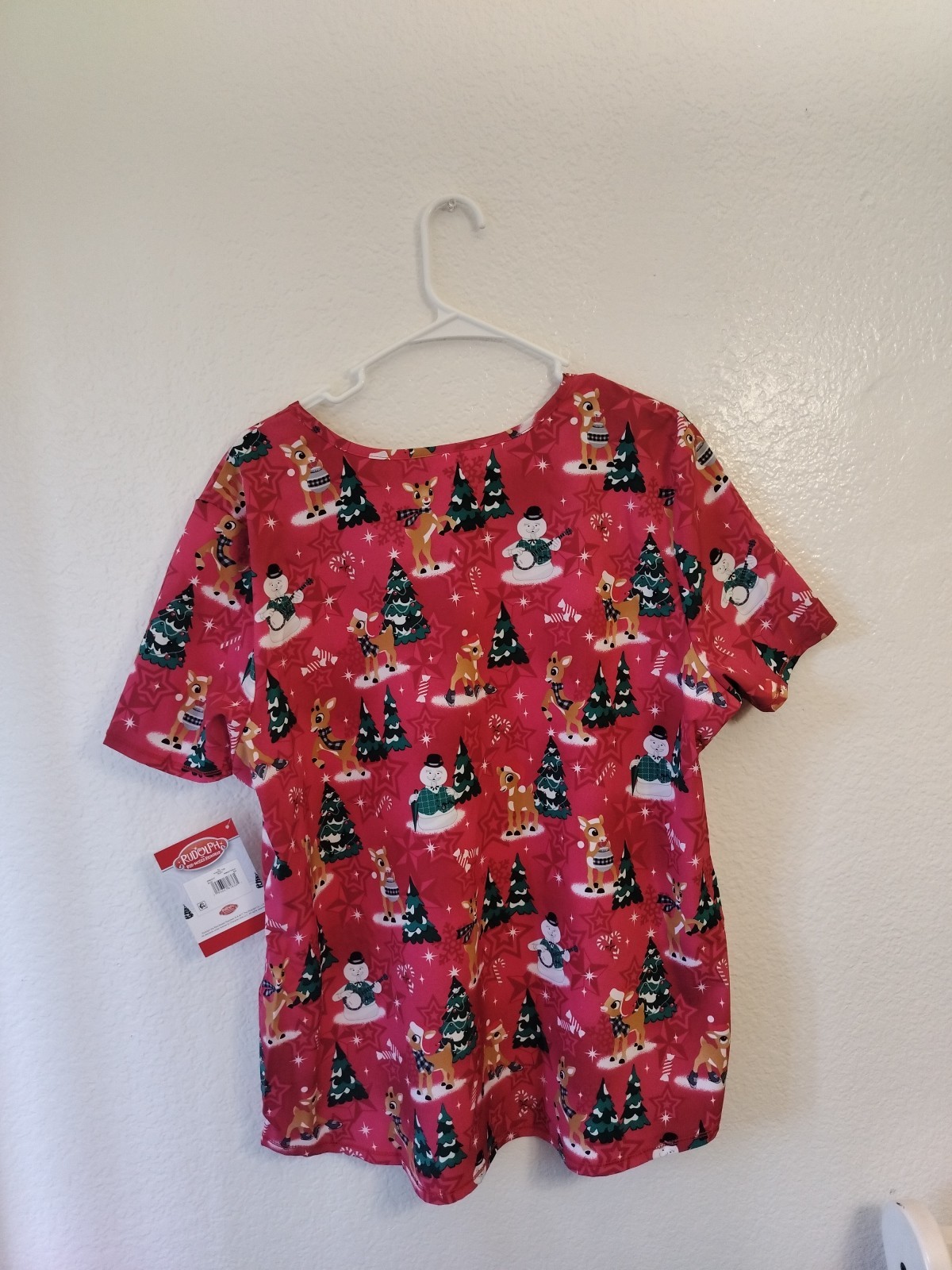 Rudolph the Red Nosed Reindeer XL Christmas Scrub Shirt Top