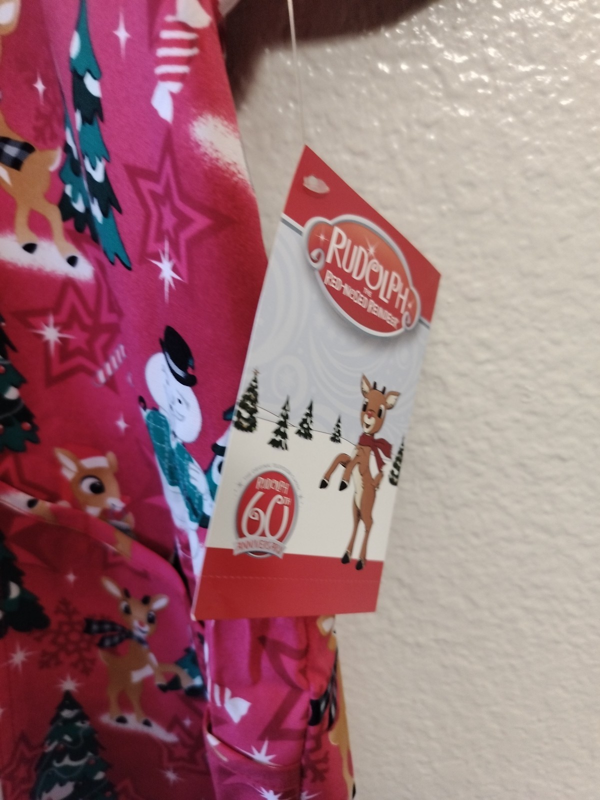 как выглядит Rudolph the Red Nosed Reindeer XL Christmas Scrub Shirt Top фото