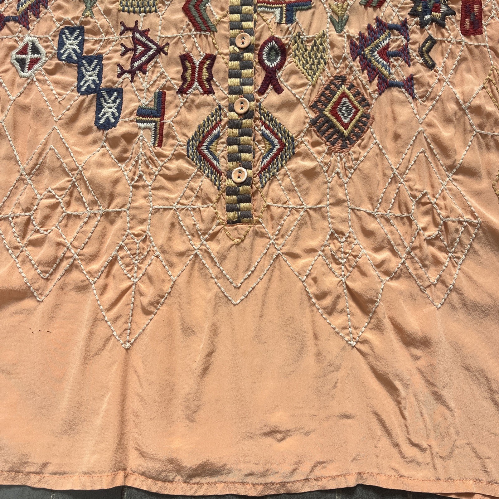 Johnny Was Biya 100 Silk Blouse Top Embroidered Size Small Gauzy Flowy Boho