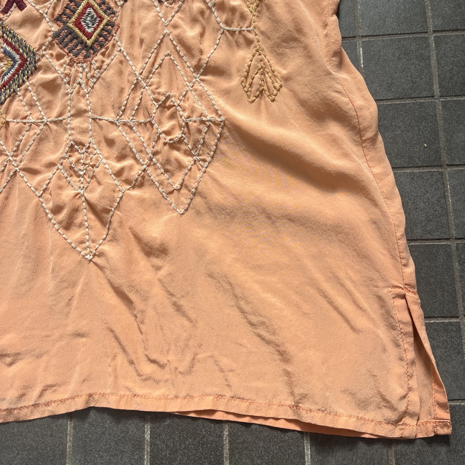 как выглядит Johnny Was Biya 100 Silk Blouse Top Embroidered Size Small Gauzy Flowy Boho фото
