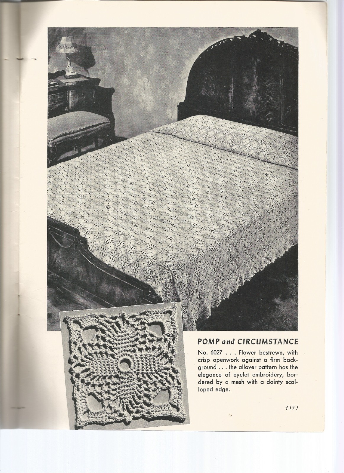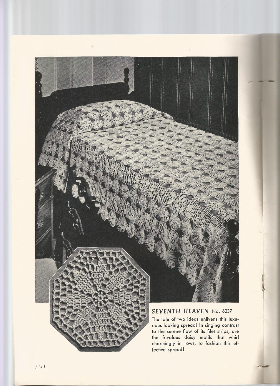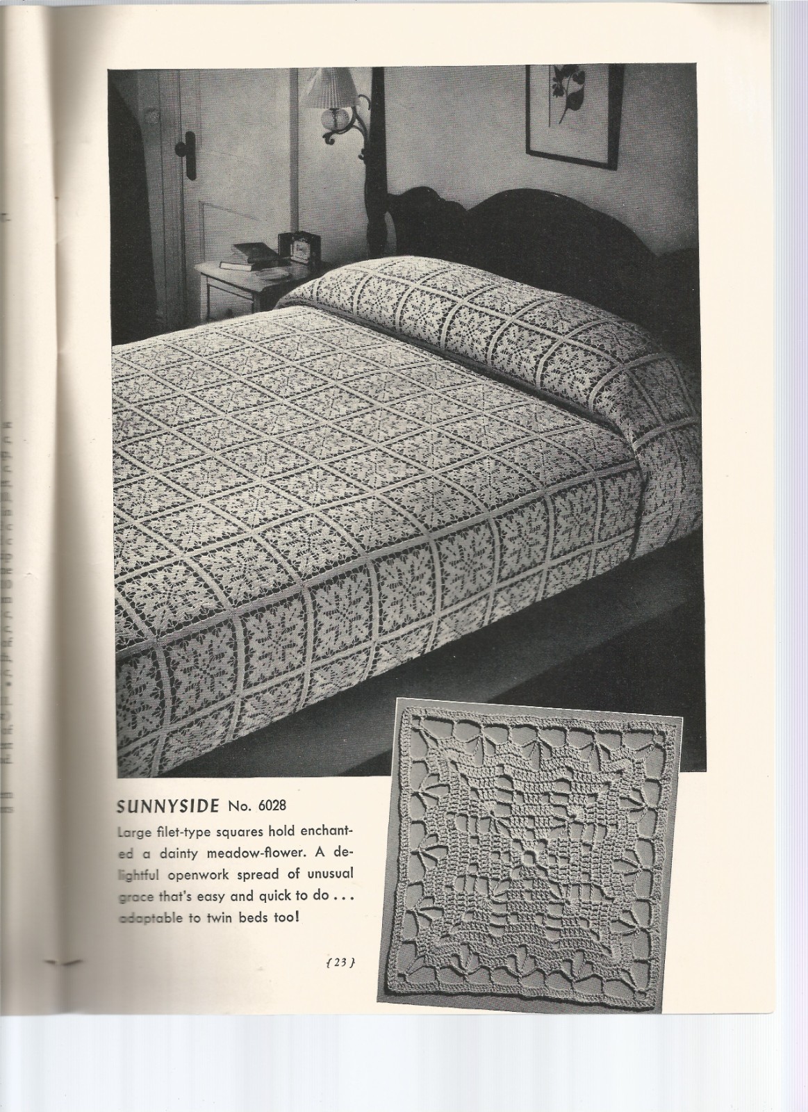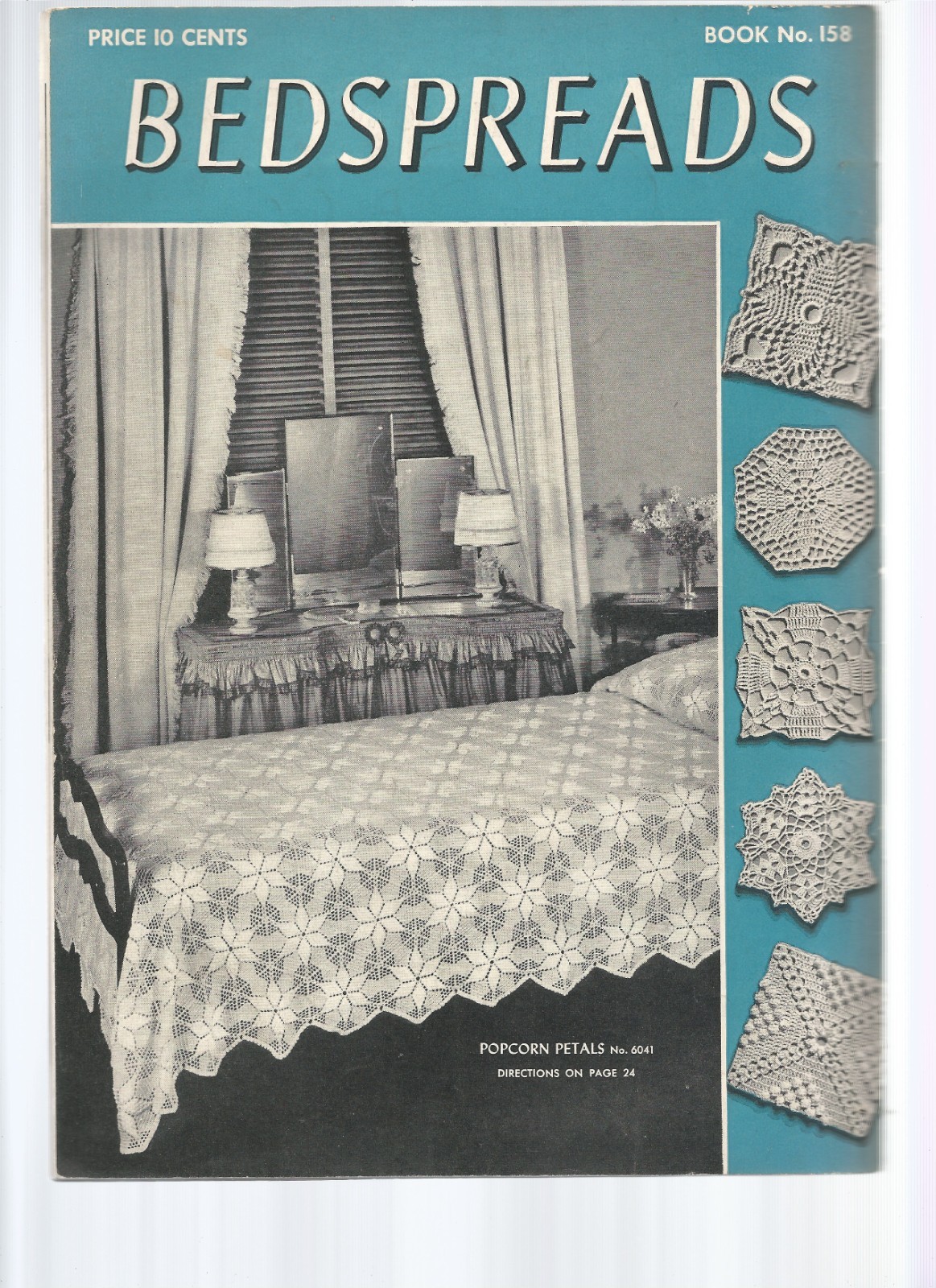 Knit Crochet Patterns Bedspreads Motif Filet Popcorn Vintage 1940s Q17