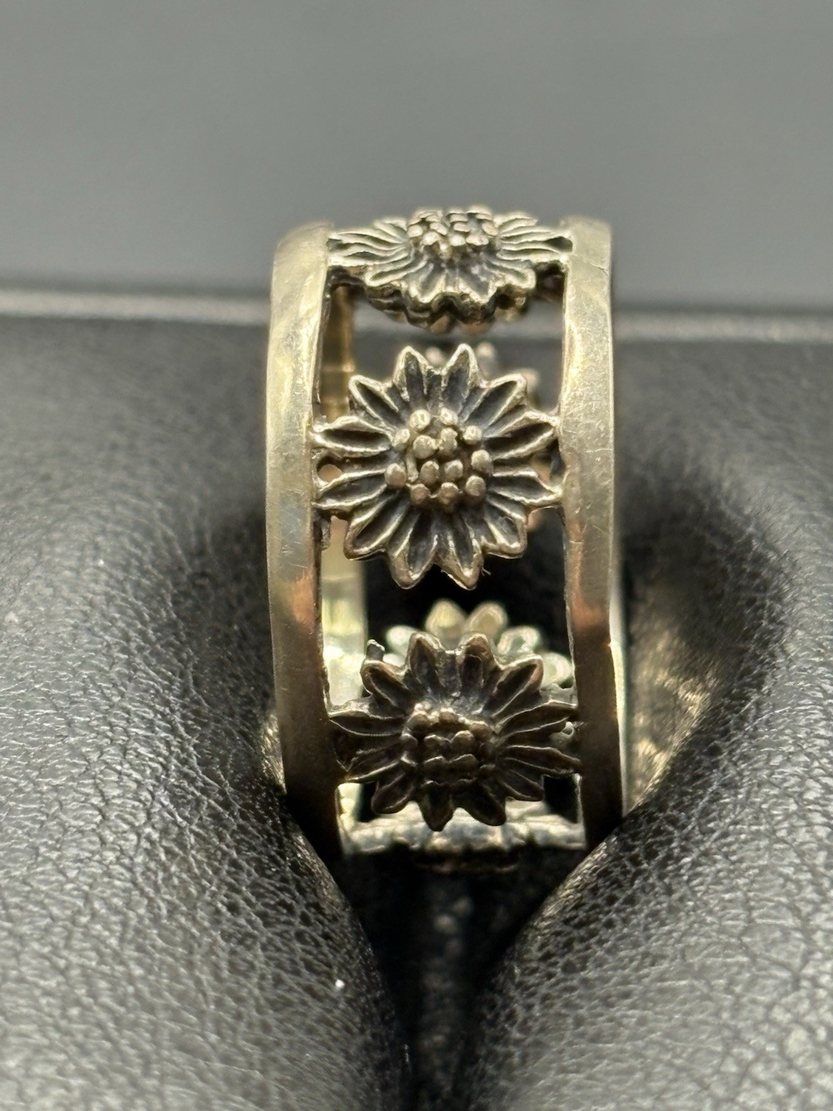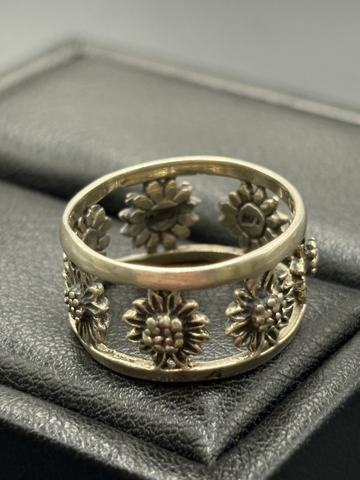 как выглядит Vintage Sterling Silver Open Work Sunflower Ring 3 Grams Size 6.5 B9 фото