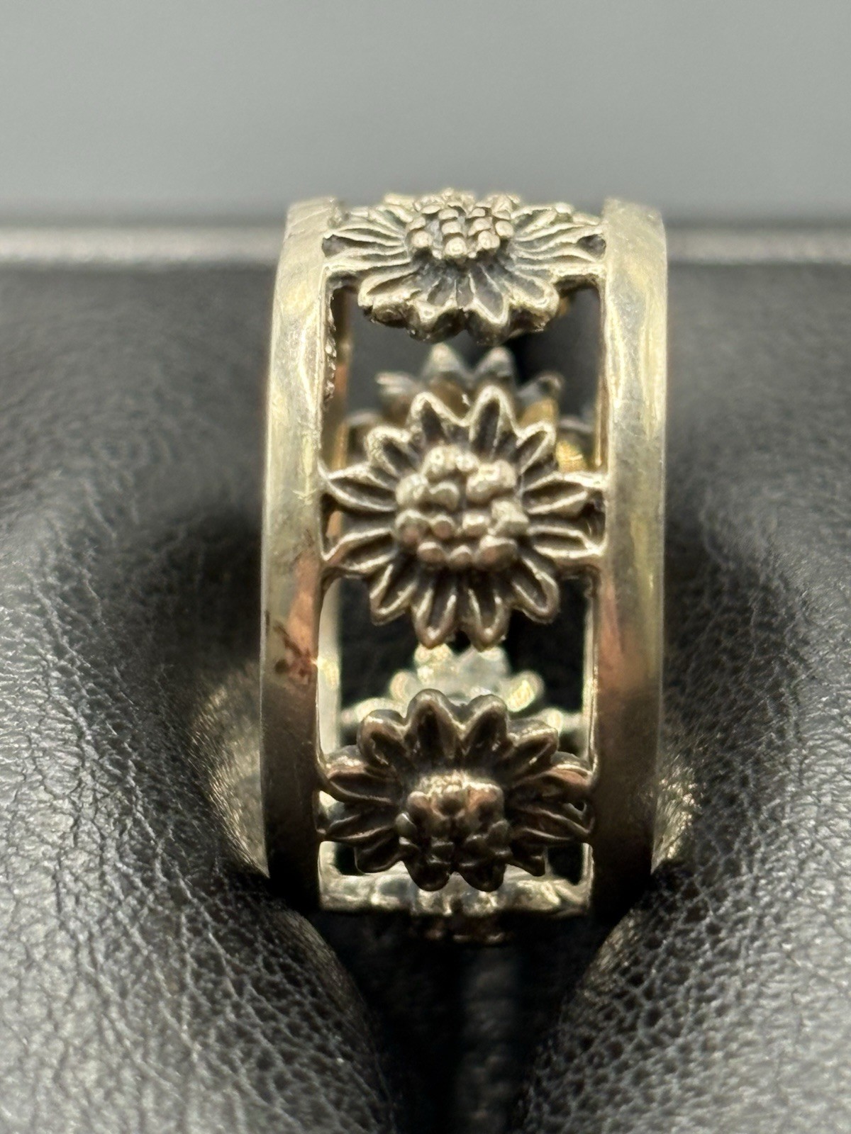 Vintage Sterling Silver Open Work Sunflower Ring 3 Grams Size 6.5 B9