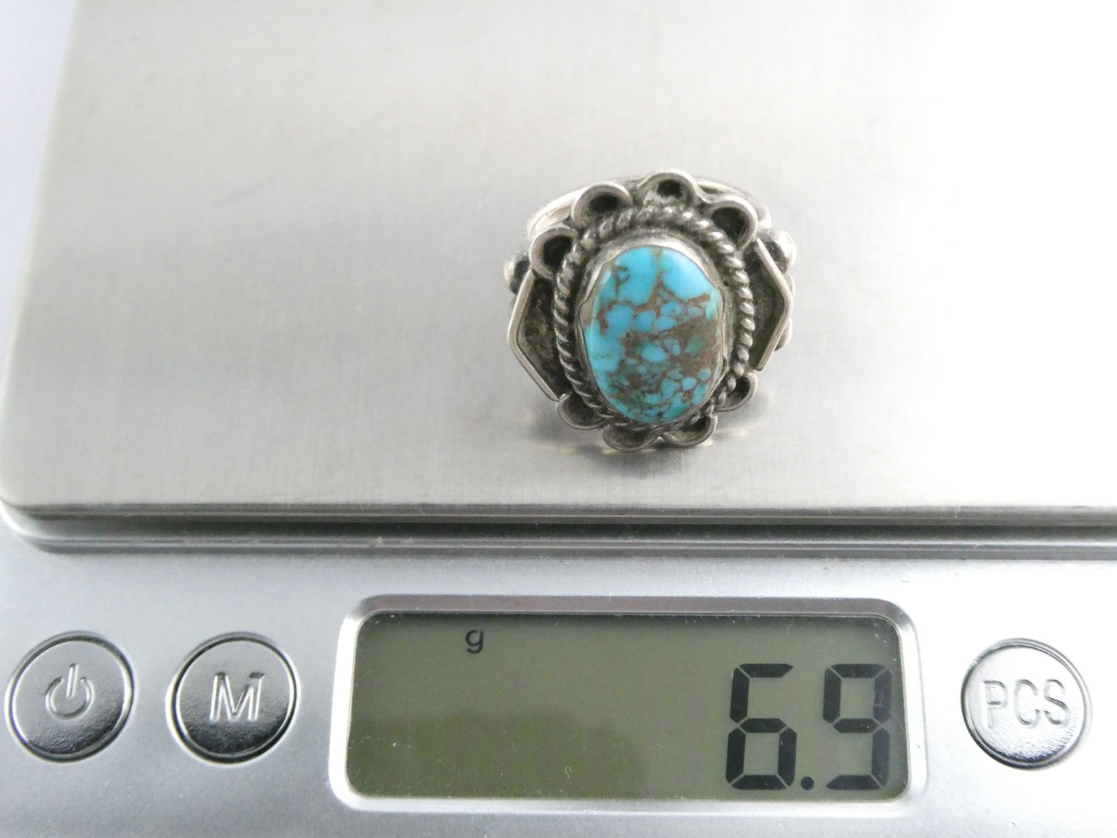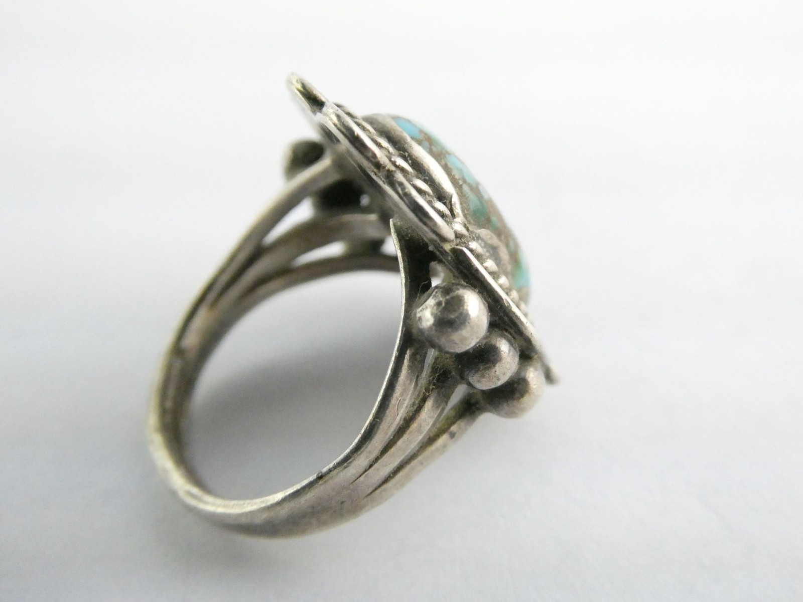 как выглядит Vintage Southwestern Unsigned Sterling Silver Turquoise Cabochon Ring Size 6.25 фото