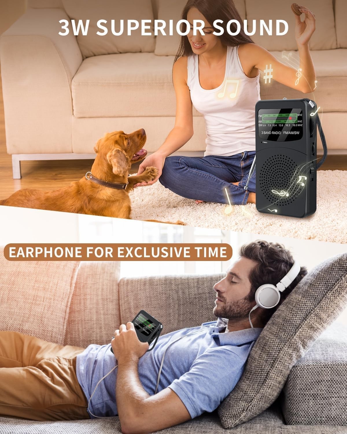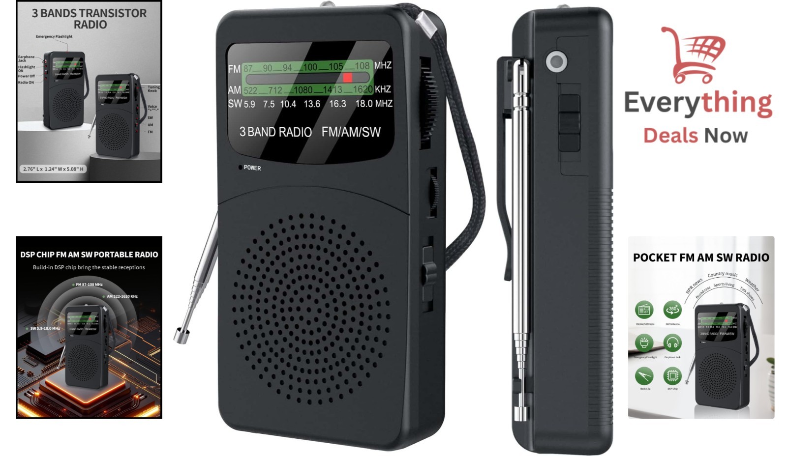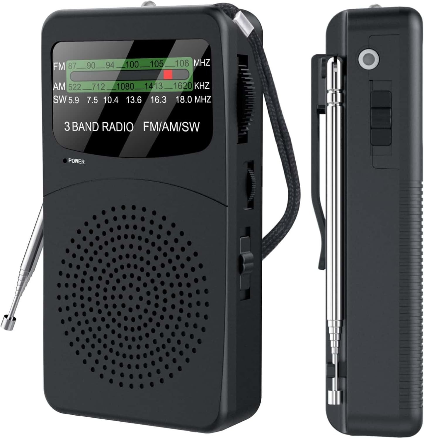 Portable AM FM SW Pocket Radio Battery Operated with Flashlight Headphone Jack