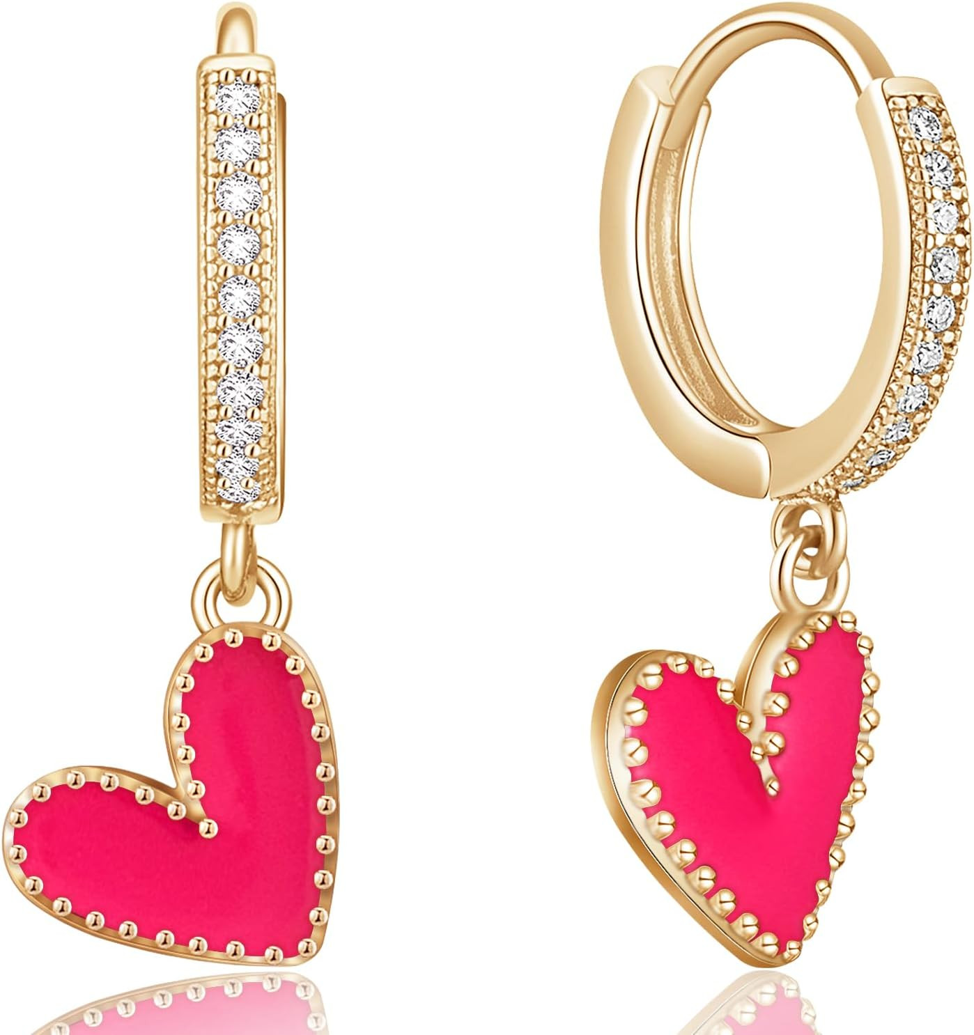 14k Gold Chic Love Heart Huggie Hoop Earrings for Women