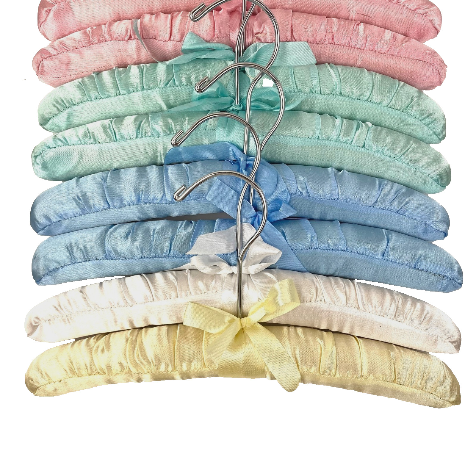 9 Padded Clothes Hangers Satin Covered Foam 12 with Bows Various Colors