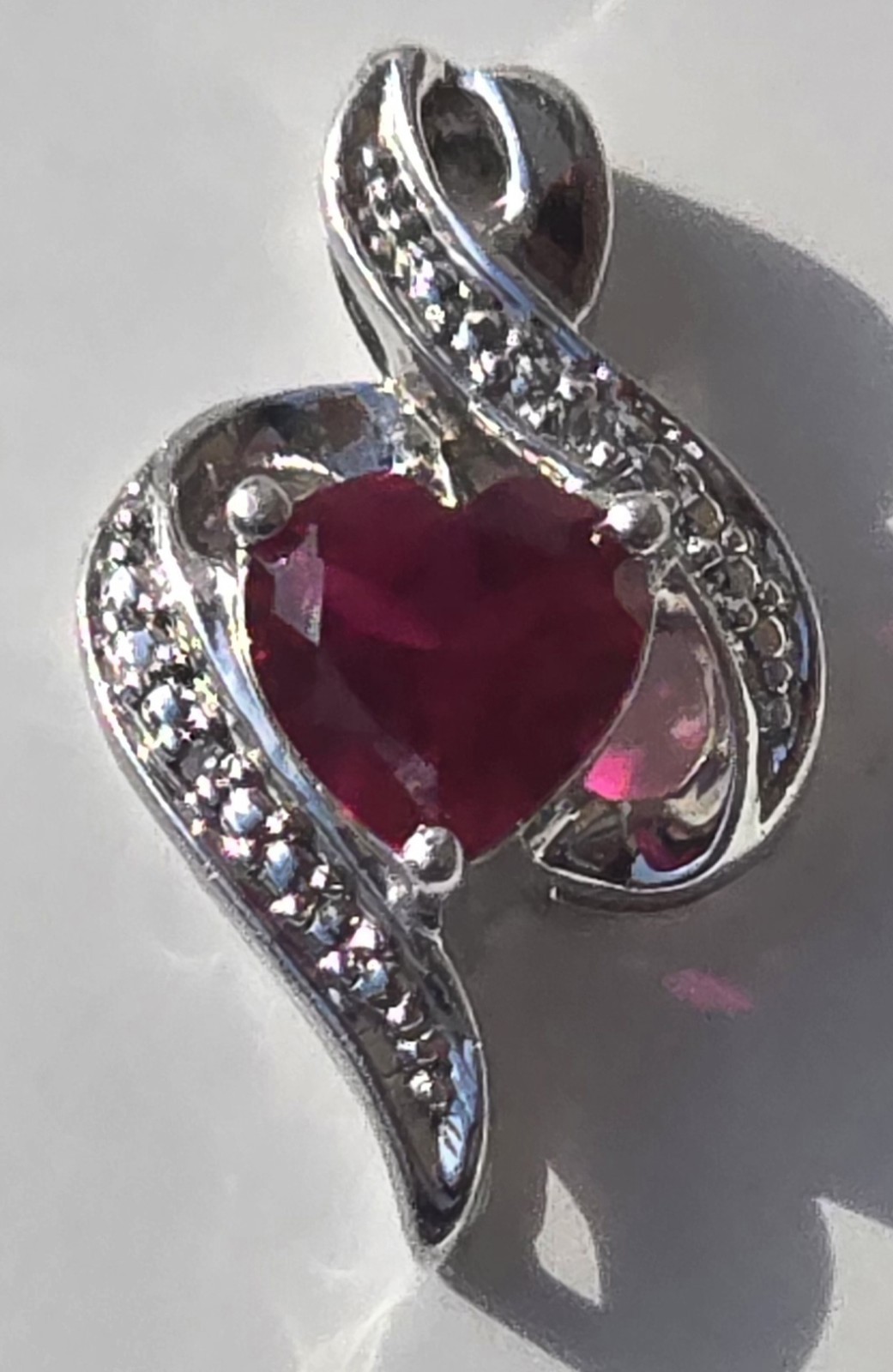 Sterling Silver Heart-Shaped Ruby Pendant 925 Red Prong Setting Love Theme