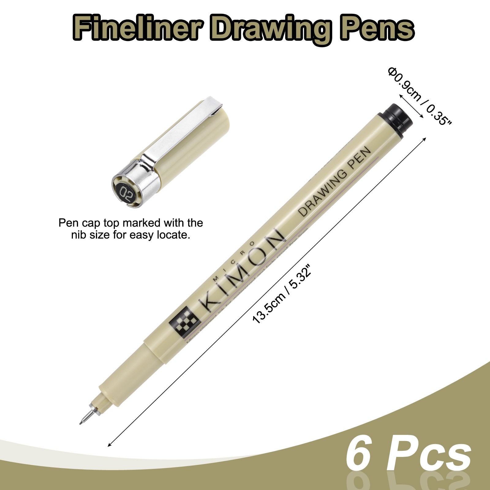 Fineliner Pens, 0.3mm Fine Points Drawing Pen for Sketching, Pack of 6