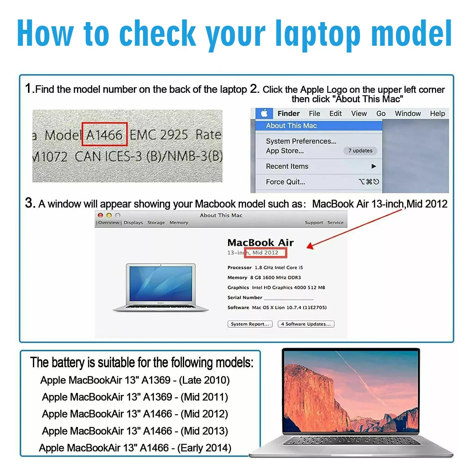 Совместимая модель: Apple MacBookAir3,2 13" A1369 - (Late 2010), Apple MacBookAir6,2 13" A1466 - (Early 2014), Apple MacBookAir6,2 13" A1466 - (Mid 2013), Apple MacBookAir7,2 13" A1466 - (Early 2015), For MacBook Air 13'' A1369 Mid 2011 & A1466 2012