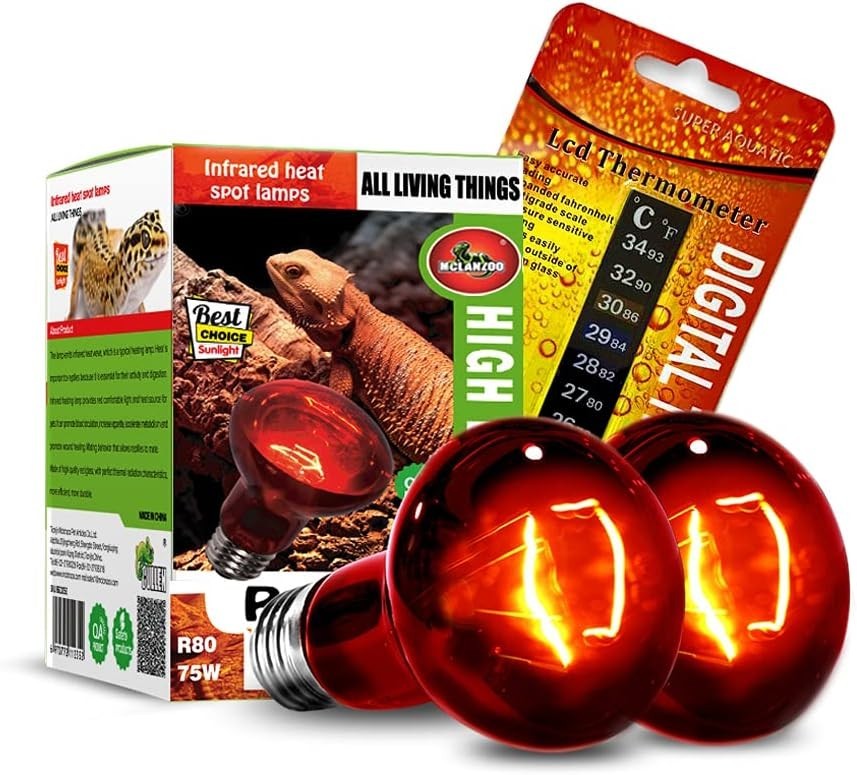 Infrared Heat Lamp Bulbs 75W 2 Pack,Red Basking Spot Light Bulb Reptile Heati...