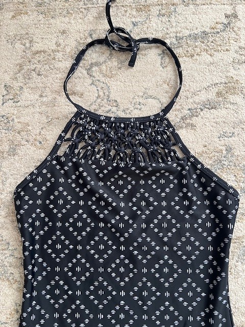 Old Navy Girl's Black White one piece Halter swimwear Size XL 14/16 NEW