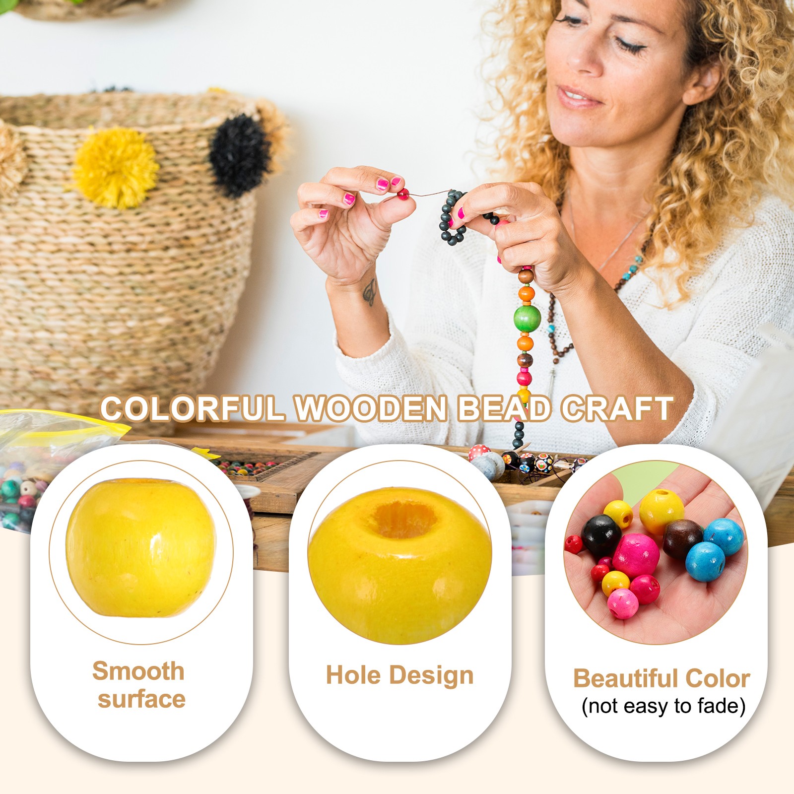 10mm Wooden Beads for Craft Making, 200 Pcs Loose Spacer Beads, Yellow