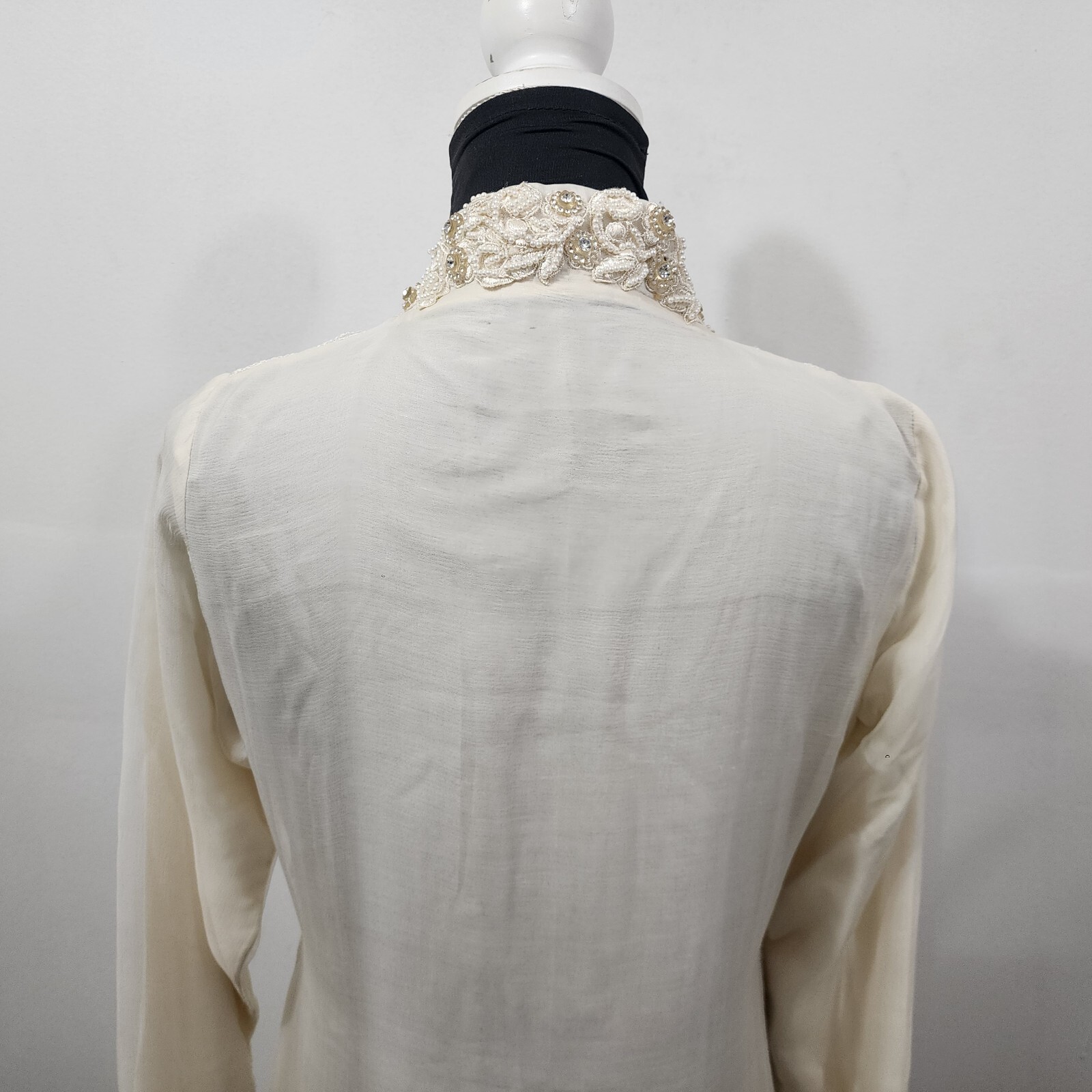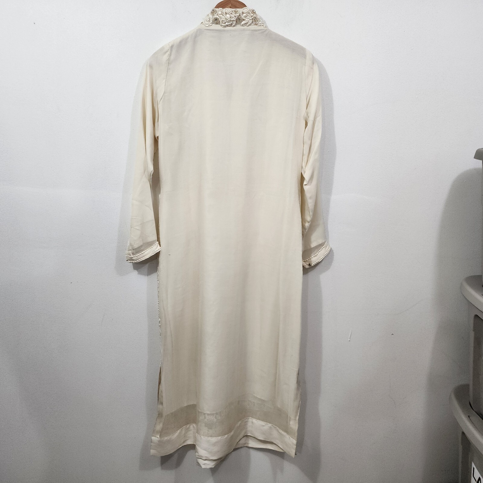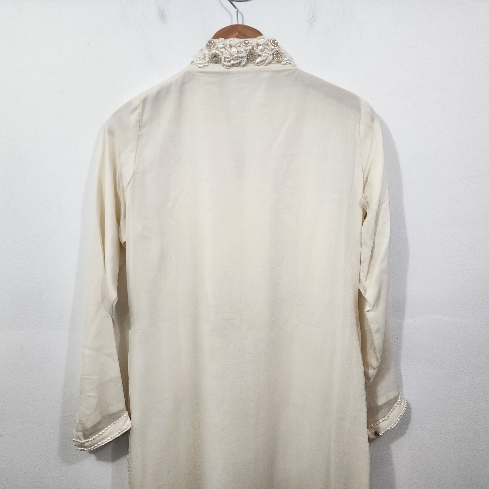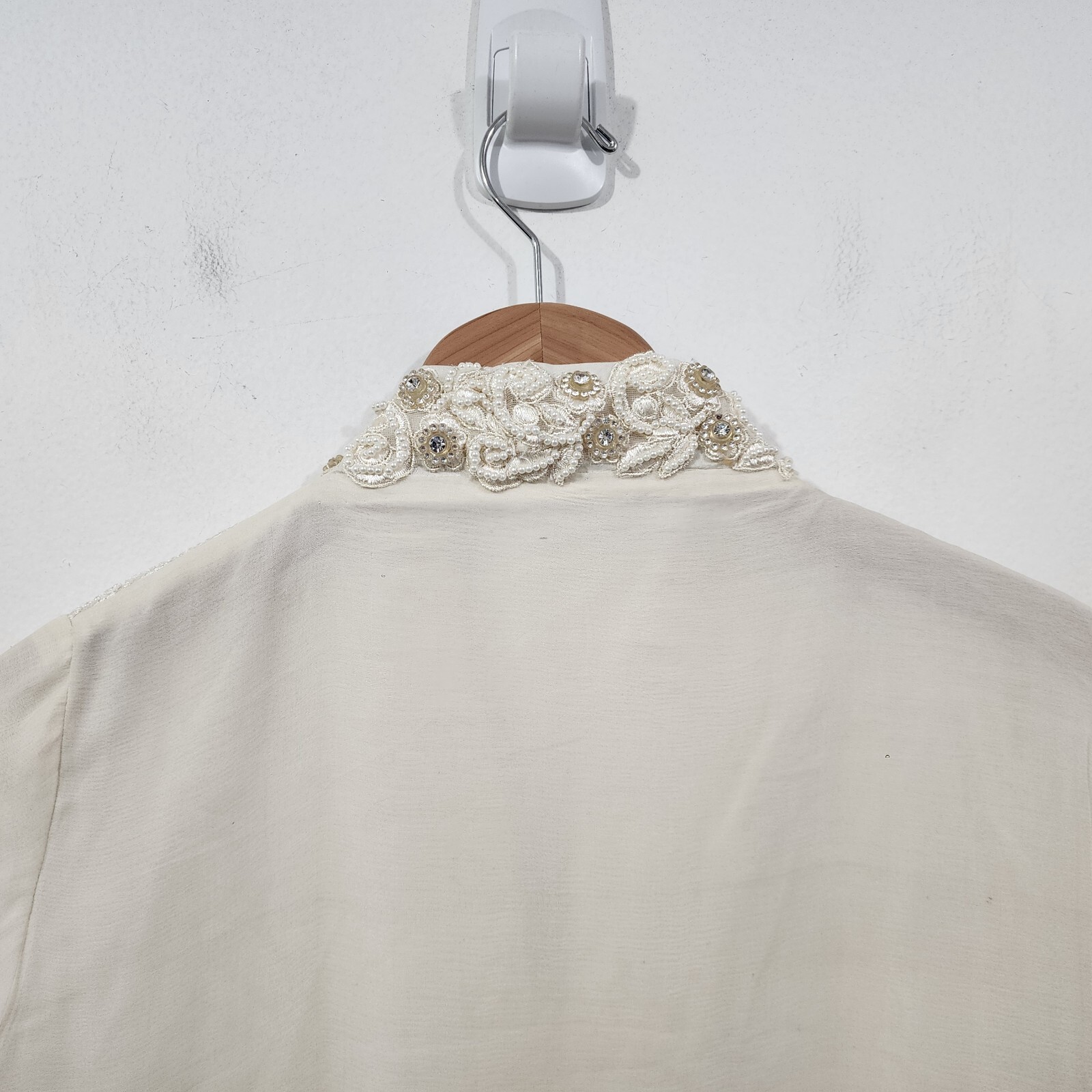 Cream Rhinestone Kurta Tunic Top 3/4 Sleeve Classic Traditional Women's Size S