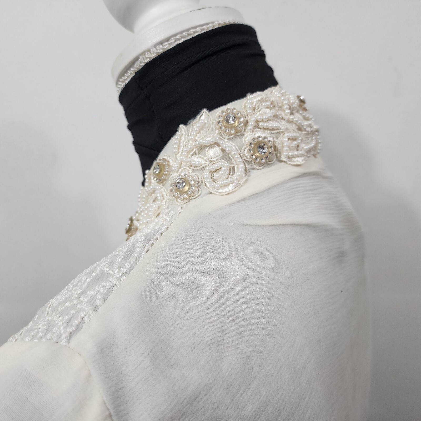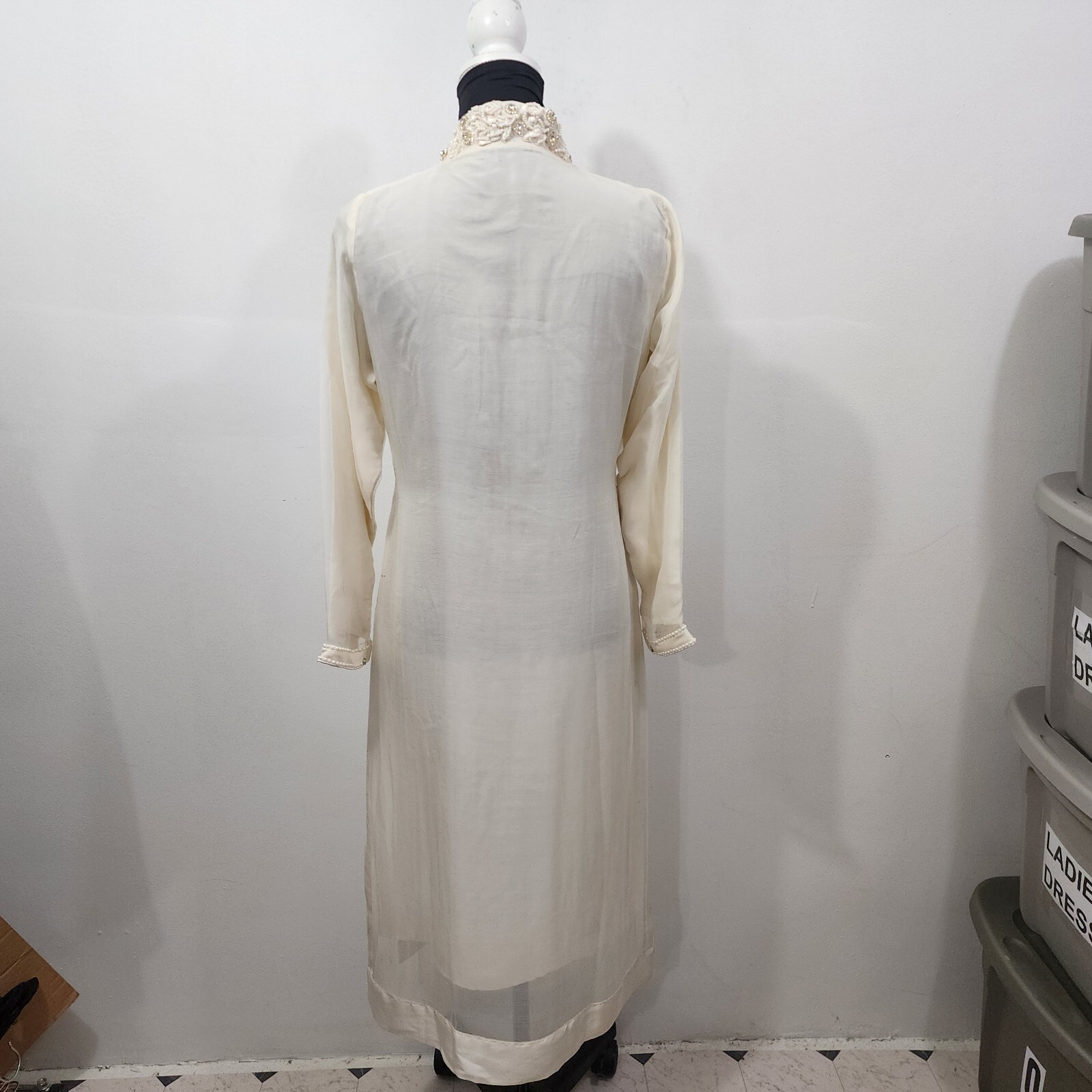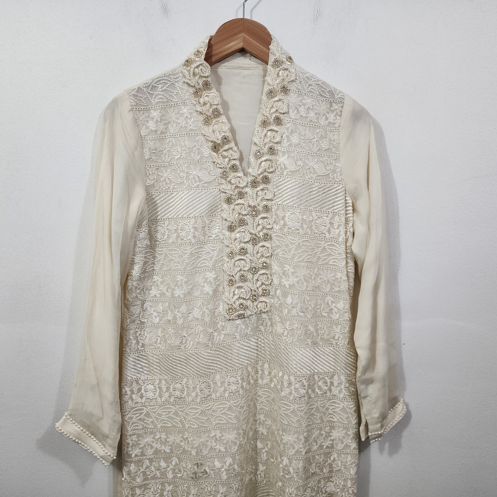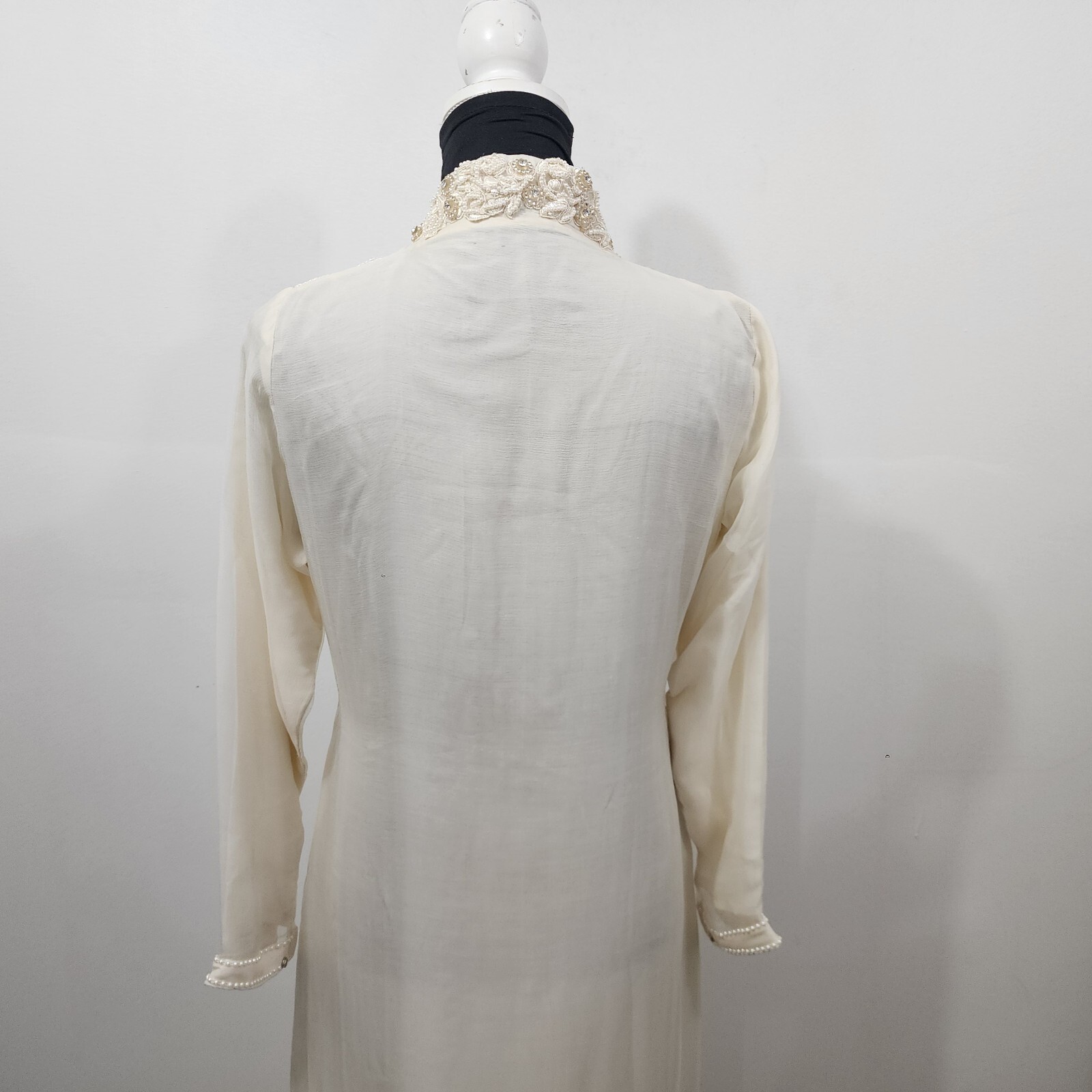 Cream Rhinestone Kurta Tunic Top 3/4 Sleeve Classic Traditional Women's Size S
