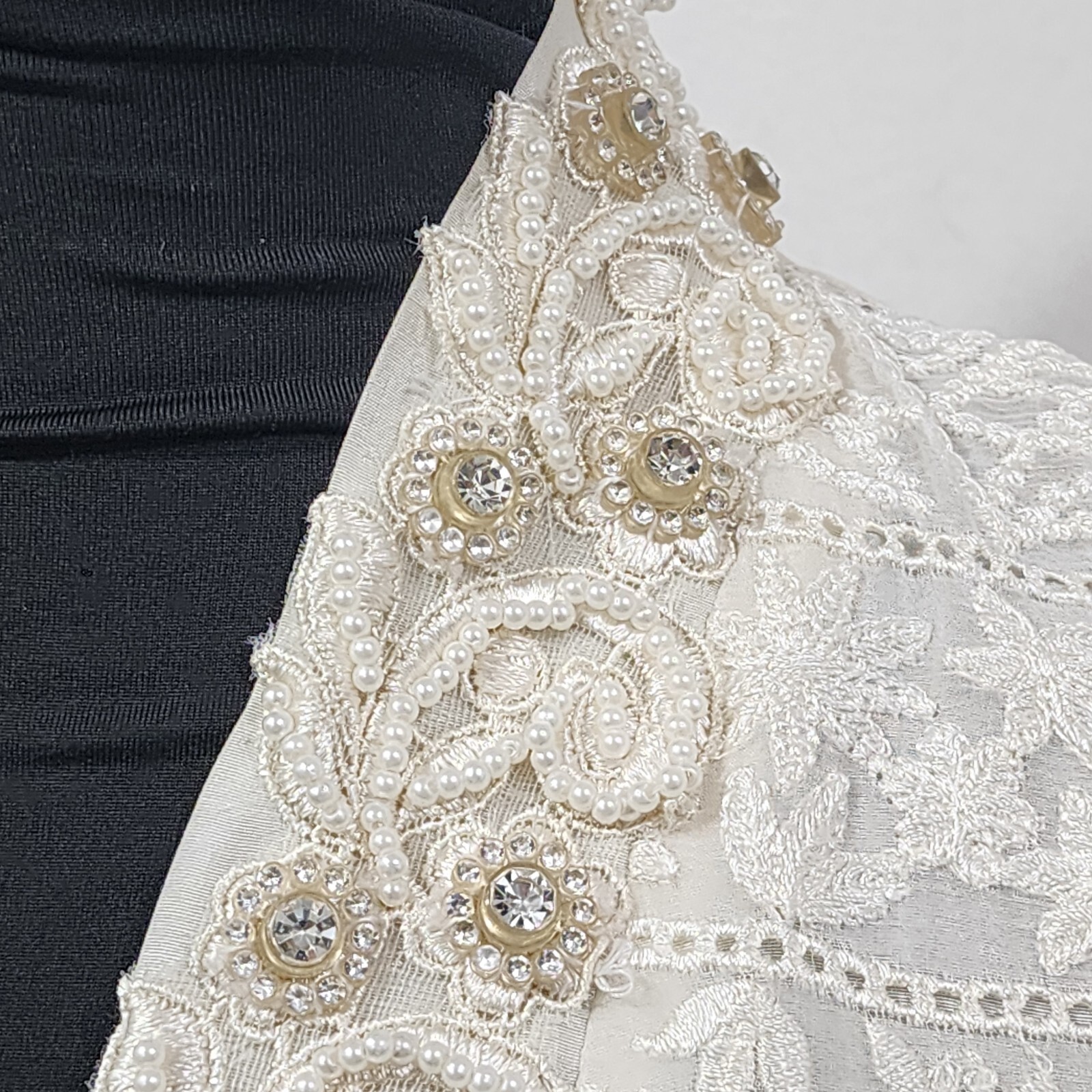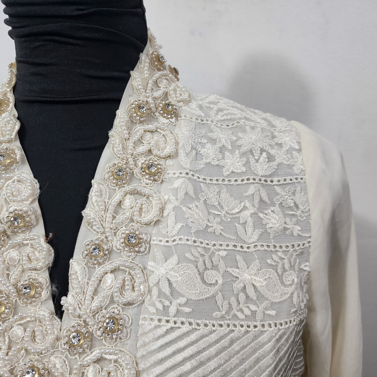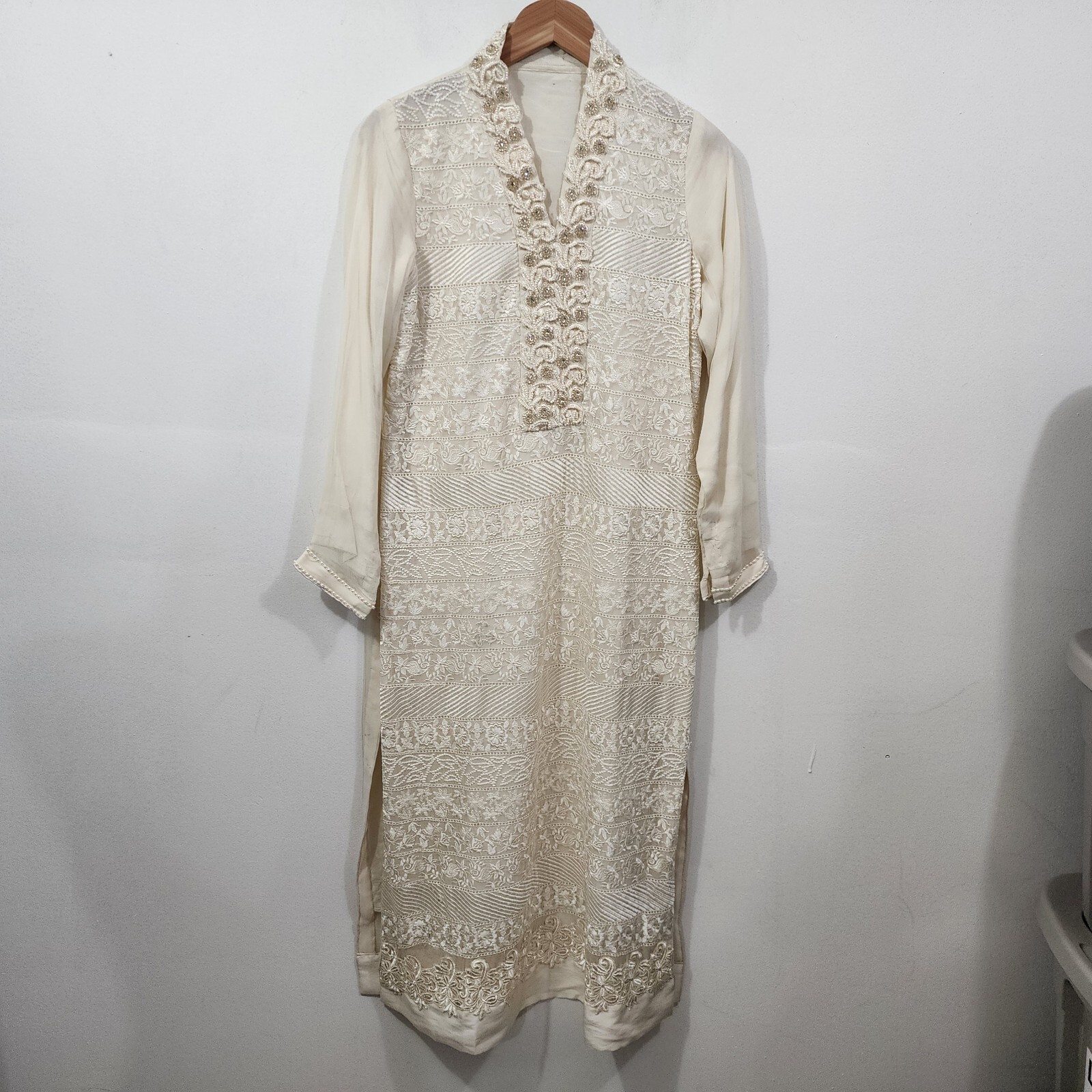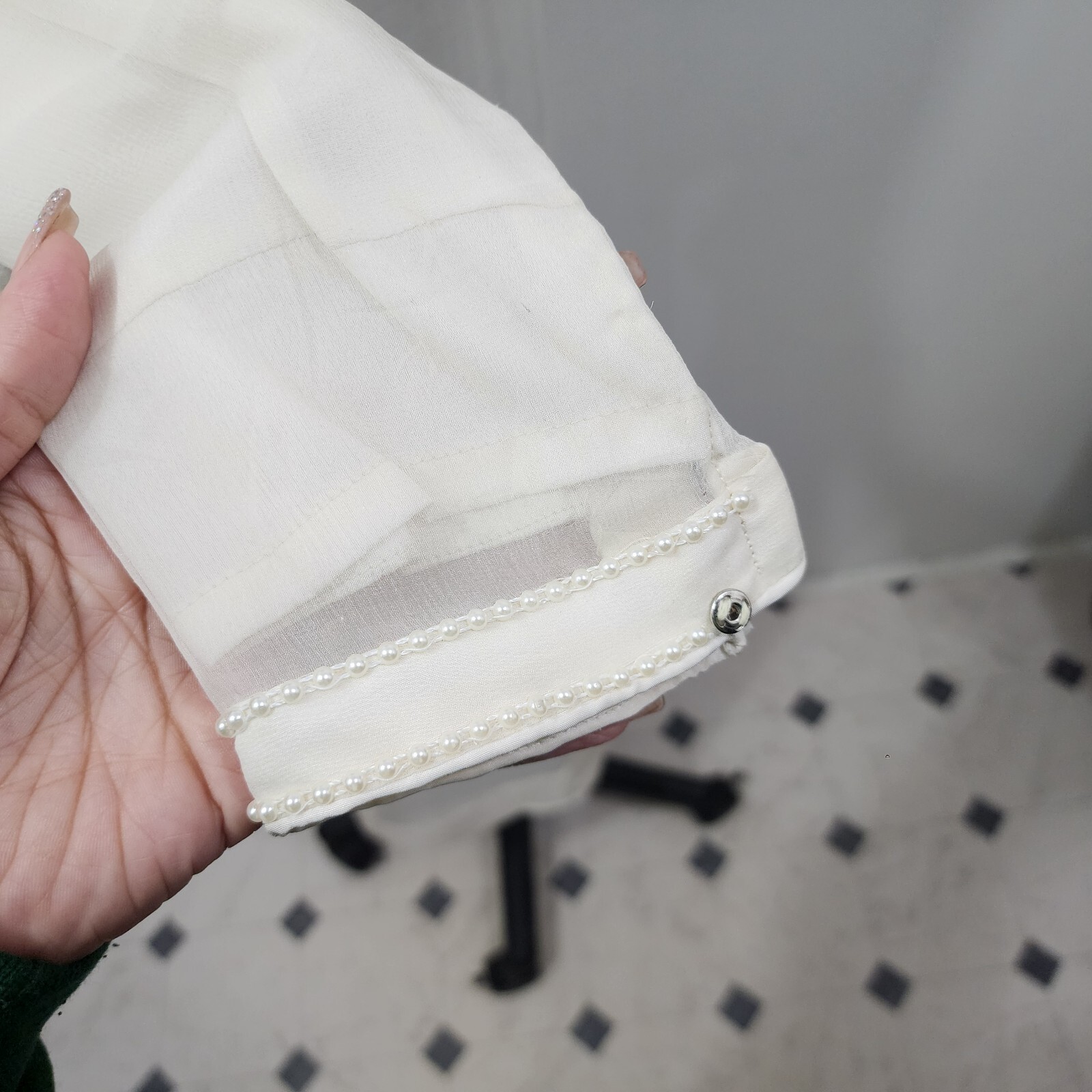 Cream Rhinestone Kurta Tunic Top 3/4 Sleeve Classic Traditional Women's Size S