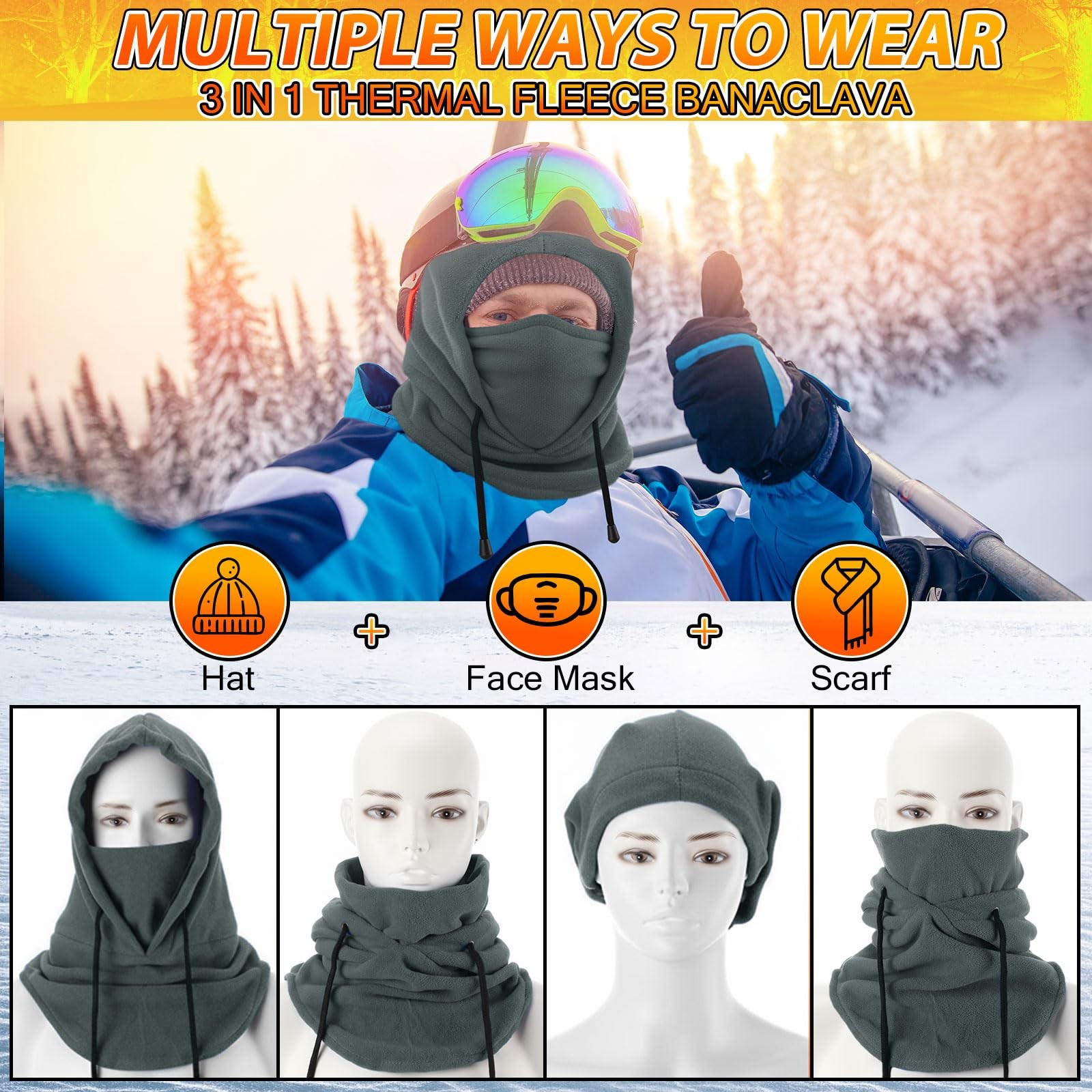 4 Pcs Winter Balaclava Ski for Men Women Fleece Hat Balaclava Warm Face Cover...