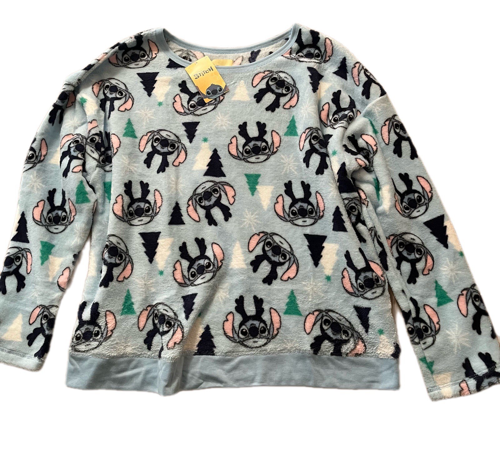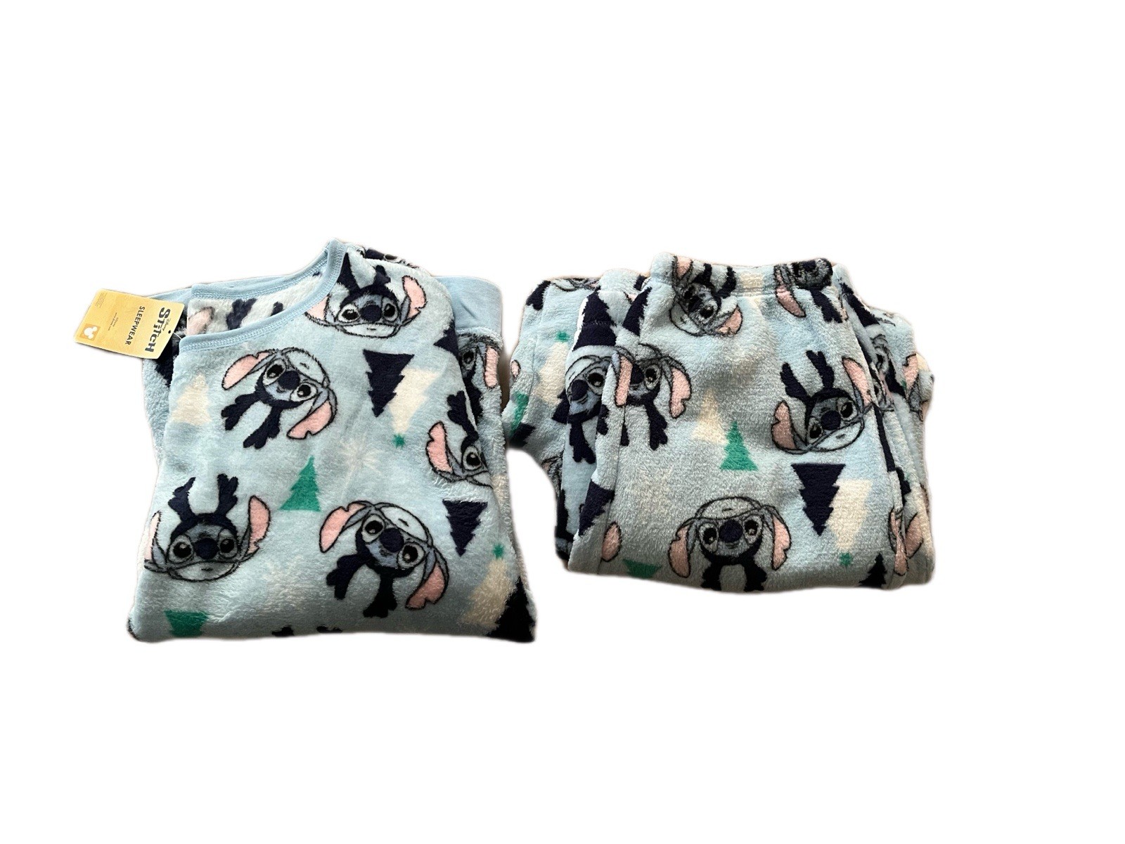 Disney Stitch Christmas Fleece Pajama Set Plus Size Long Sleeve Lightweight