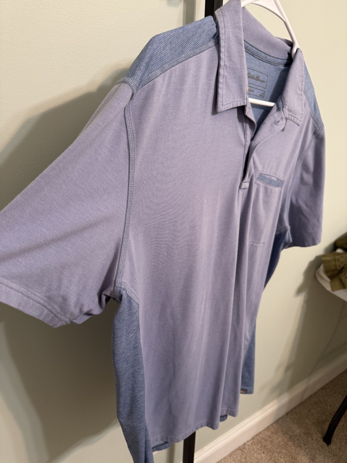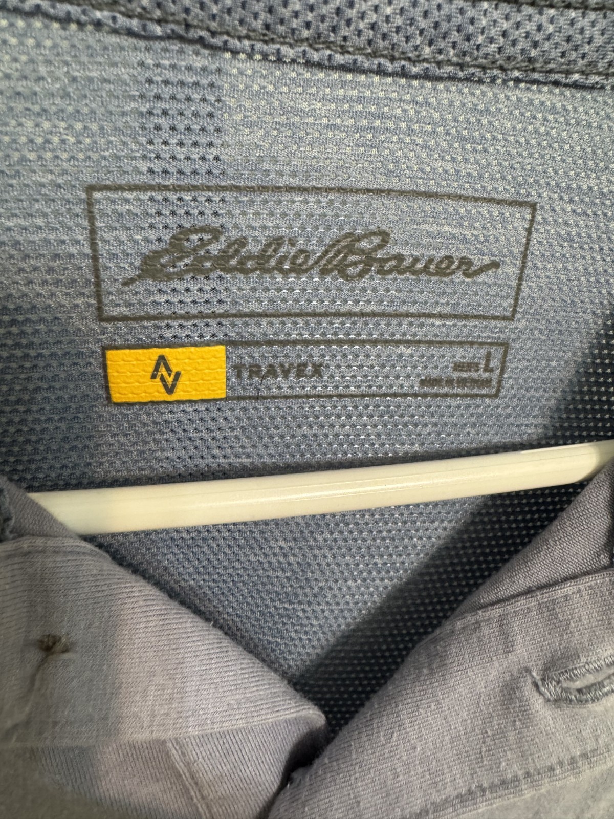 как выглядит Eddie Bauer Travex polo mens L blue mesh back фото