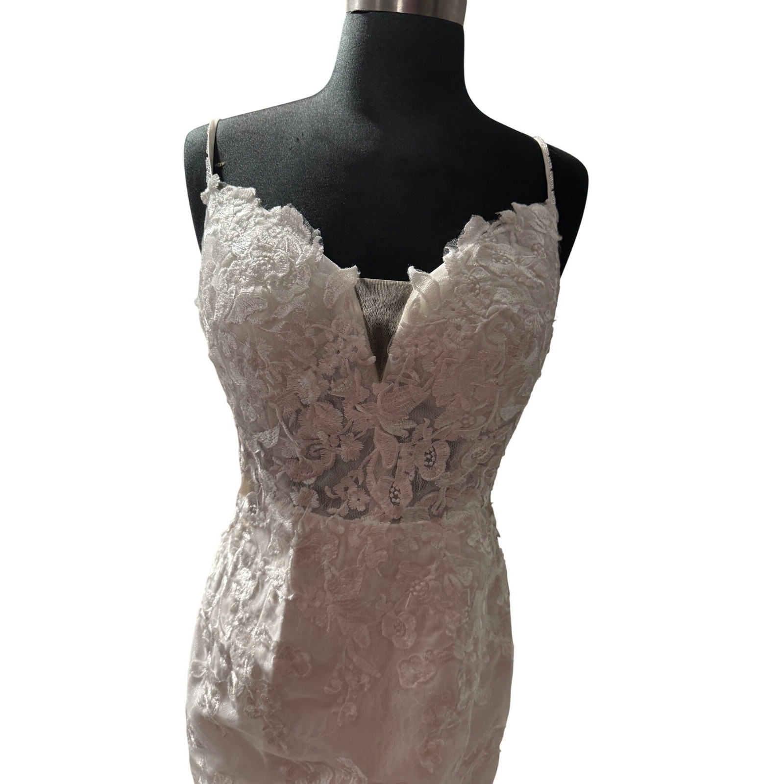 как выглядит White Floral Lace Mermaid Wedding Dress Beaded Corset Back Train фото