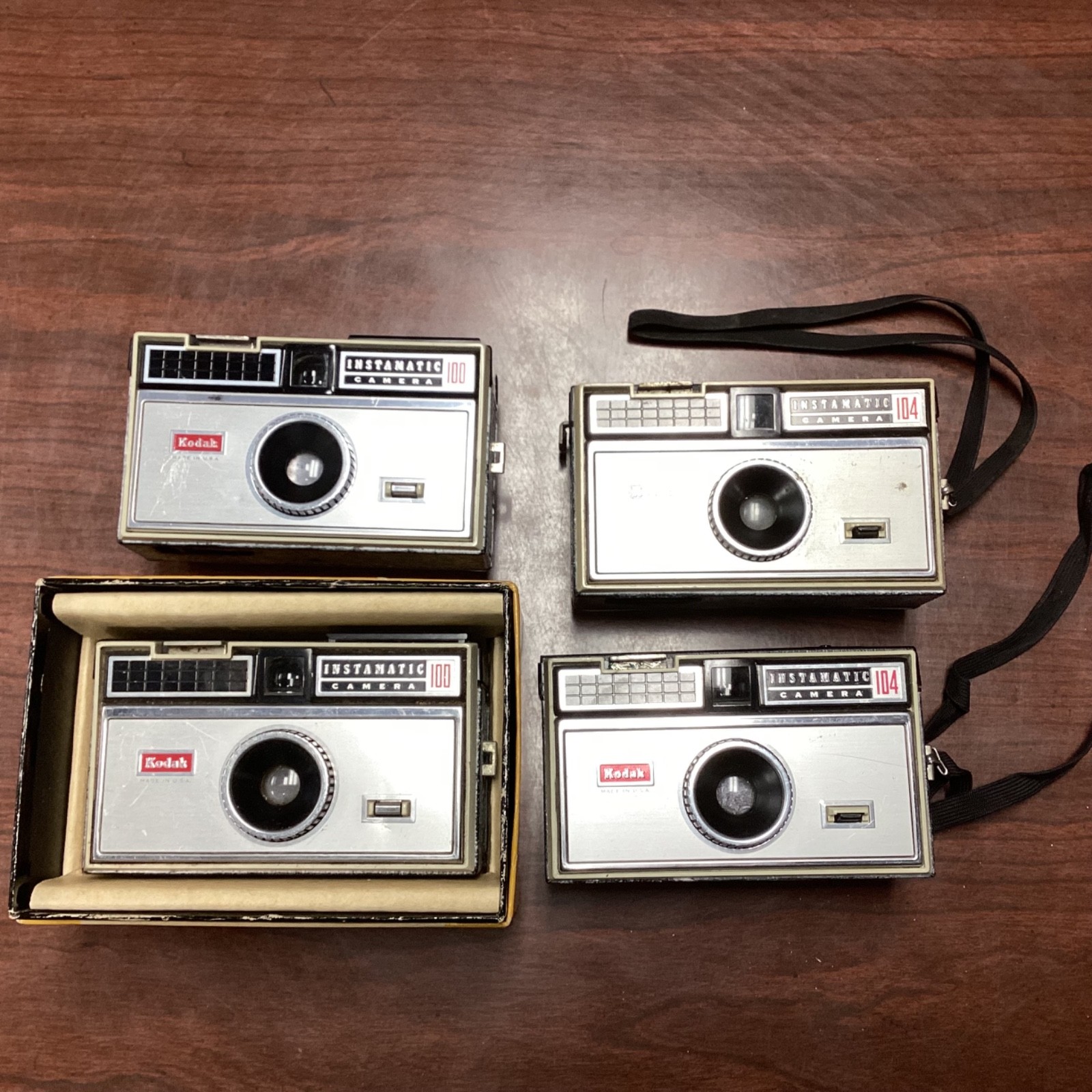 Lot of 4 Cameras: Kodak Instamatic 100 104 Film for Parts Decor Repair
