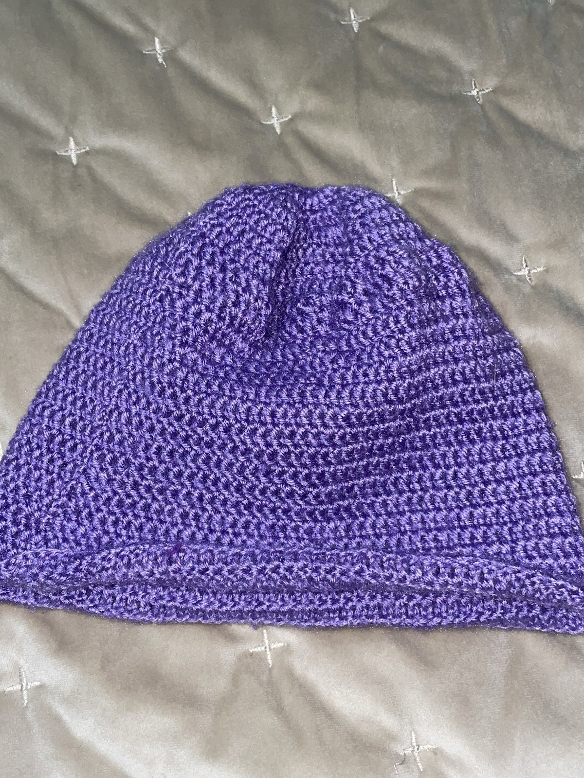 как выглядит Girl Handmade Toboggan/beanie Purple With Flower Detail Knitted фото