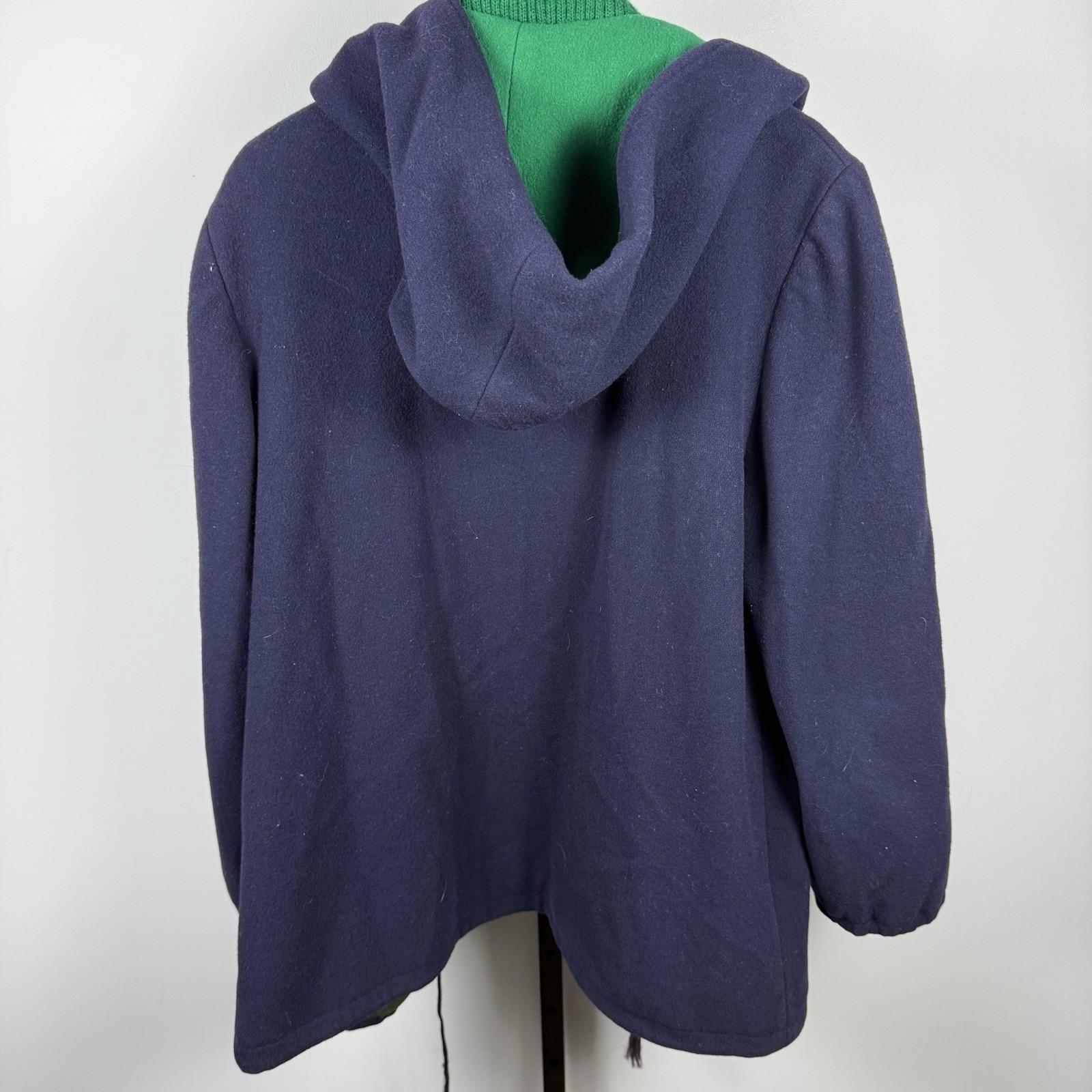 как выглядит VTG Authentic Mackintosh Vest Coat Navy Blue Green Button 100 Wool Hooded Scarf фото