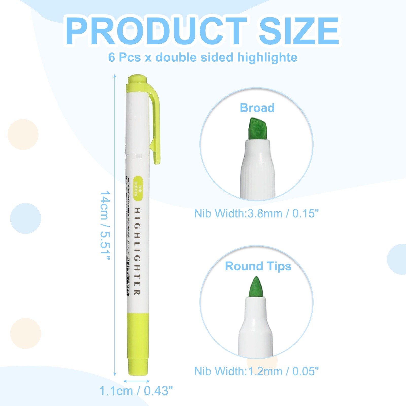 6Pack Broad and Round Tips Highlighter, Bright Green