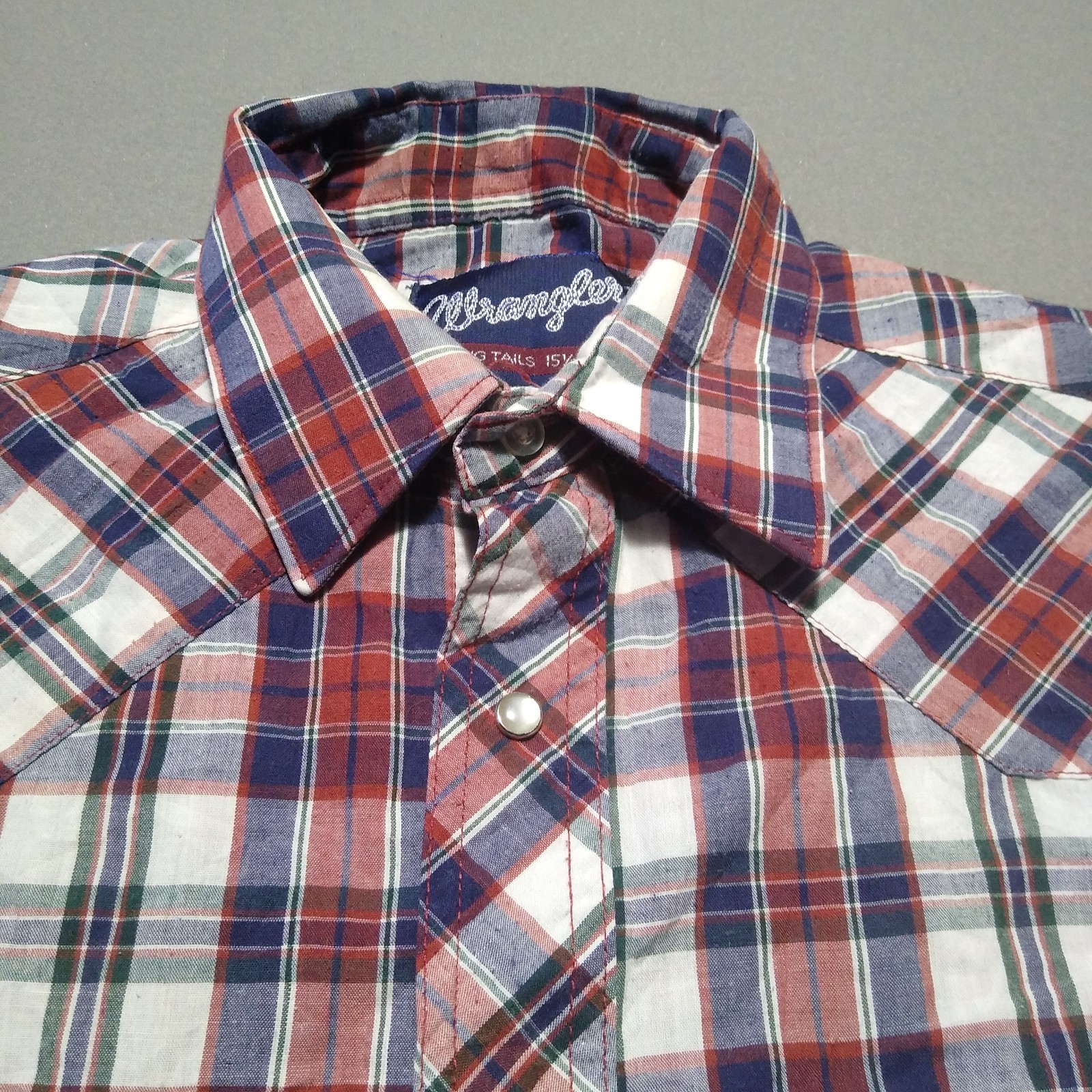 как выглядит Wrangler Pearl Snap Shirt Cowboy Cut X Long Tails Mens Medium Vintage Late 70