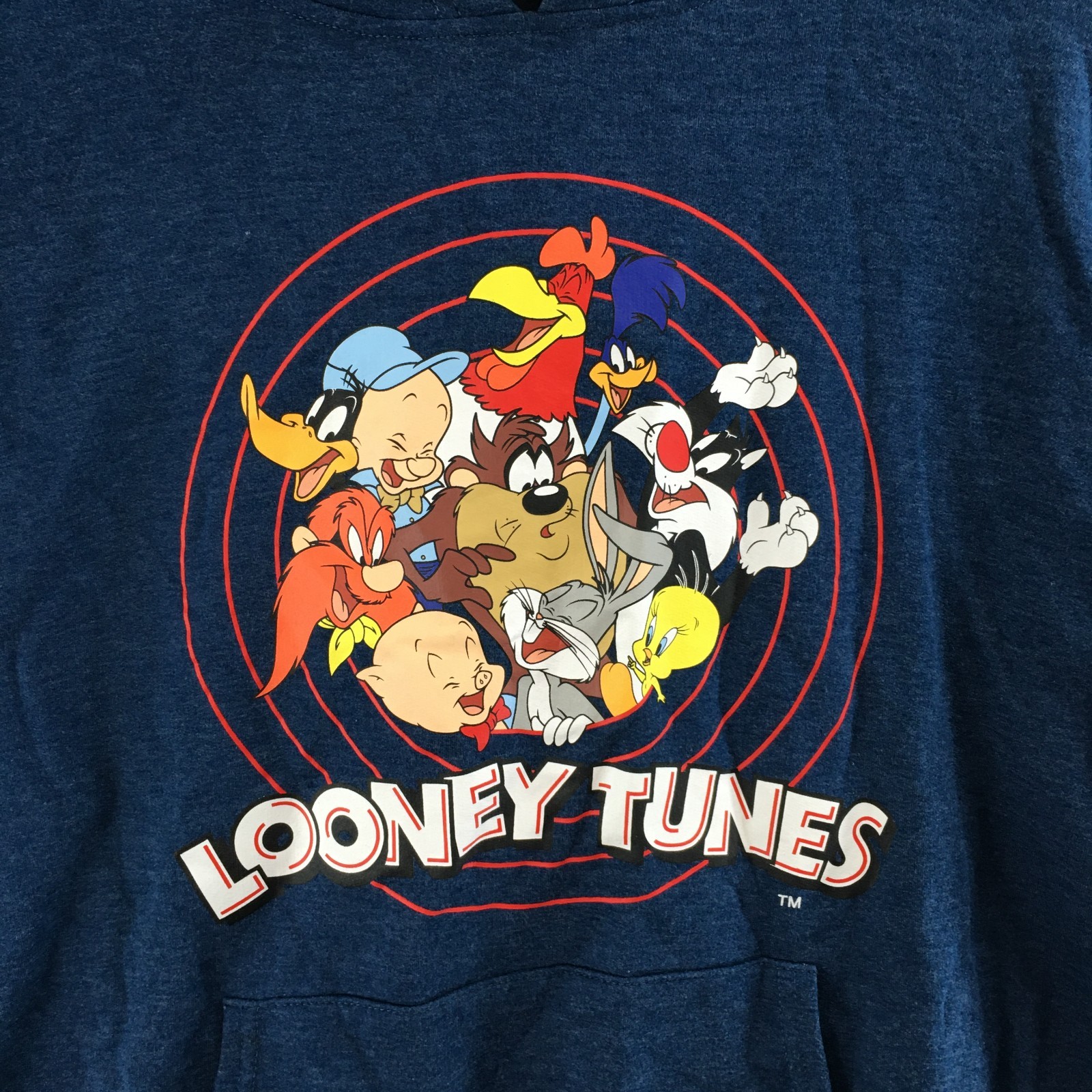 как выглядит Looney Tunes Pullover Hoodie Youth XL Graphic Long Sleeve Cotton Blend Blue фото