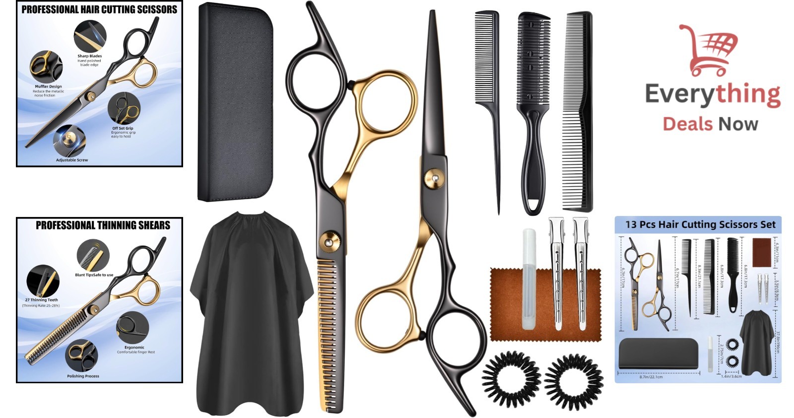 13pc Professional Hair Cutting Scissors Shears Kit Barber Set Salon Home Haircut