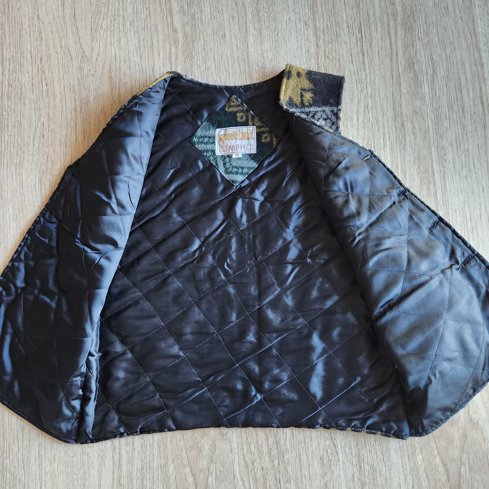 как выглядит Vintage Speed Limit MPH Holiday Wool Blend Quilted Lined Vest Button Pocket Sz.M фото