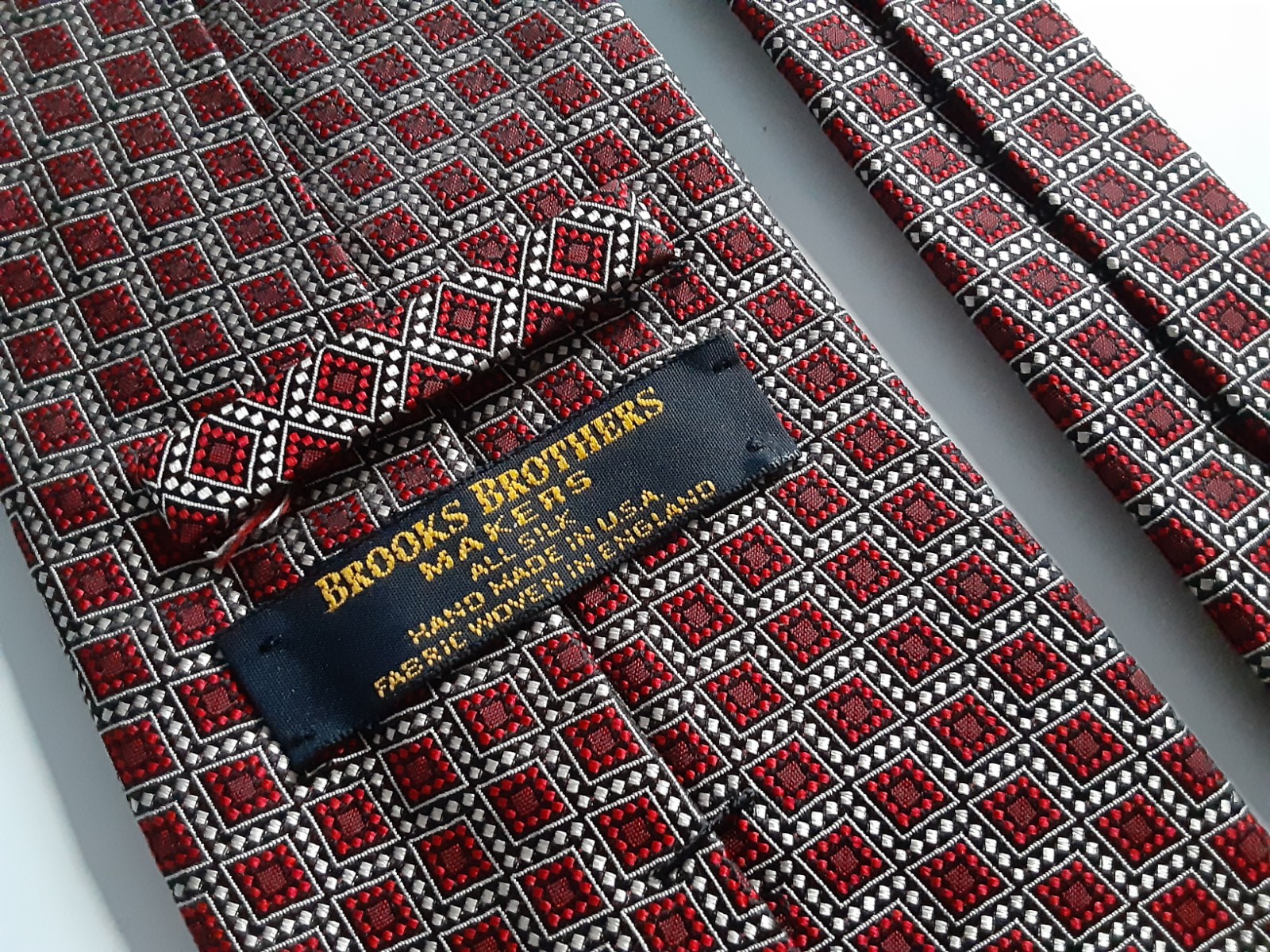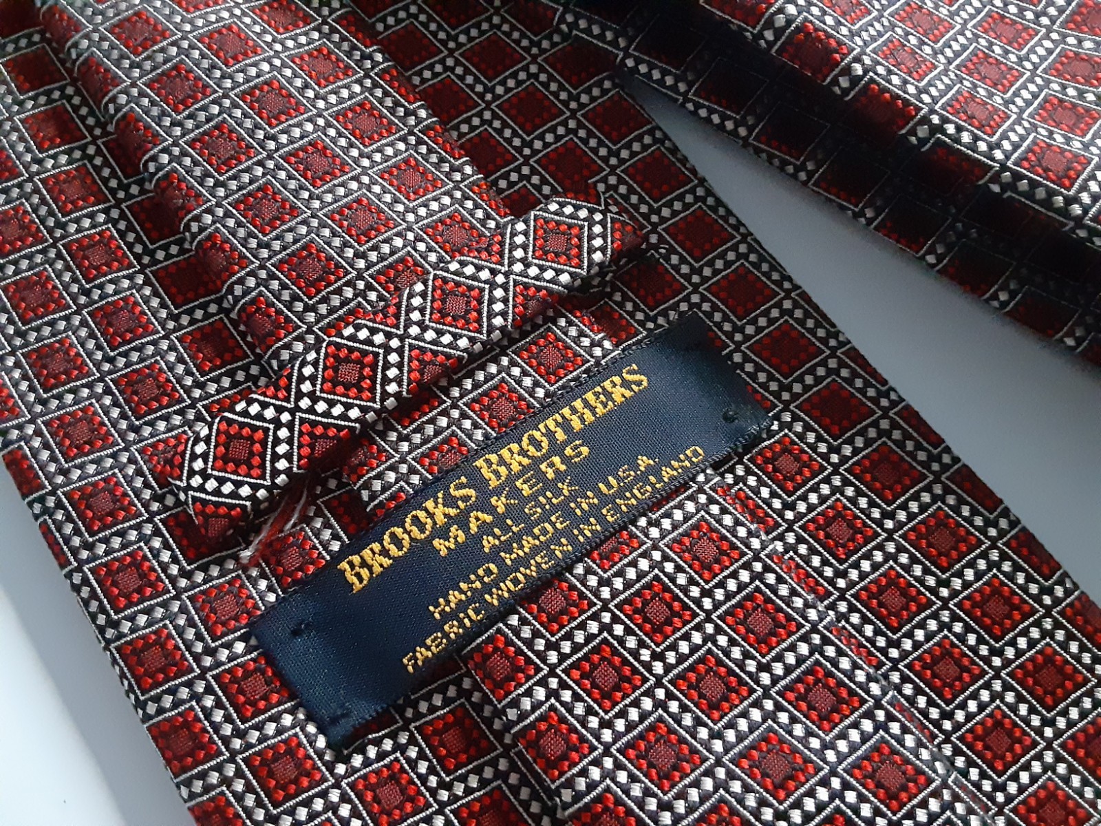 как выглядит Vtg Brooks Brothers Silk Jacquard Tie 3.75" x 57" Burgundy Handmade USA фото