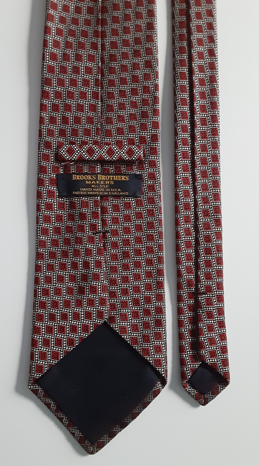 Vtg Brooks Brothers Silk Jacquard Tie 3.75 x 57 Burgundy Handmade USA