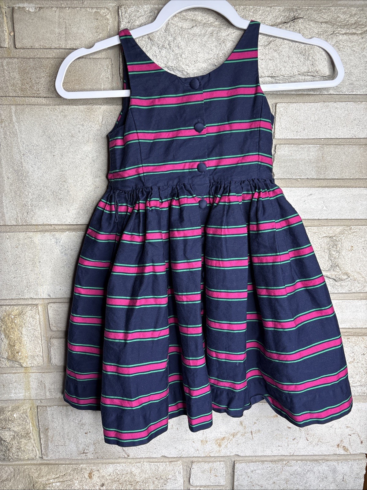Polo Ralph Lauren Girls Size 6 Pink and Dark Blue Stripe Dress Sleeveless Lined