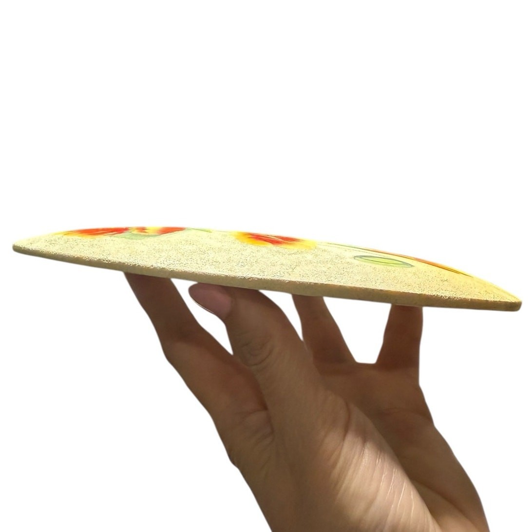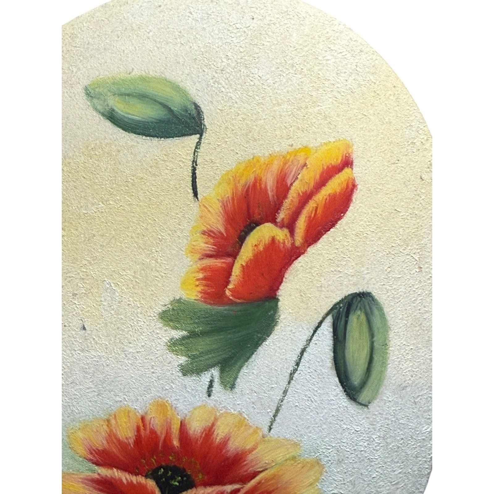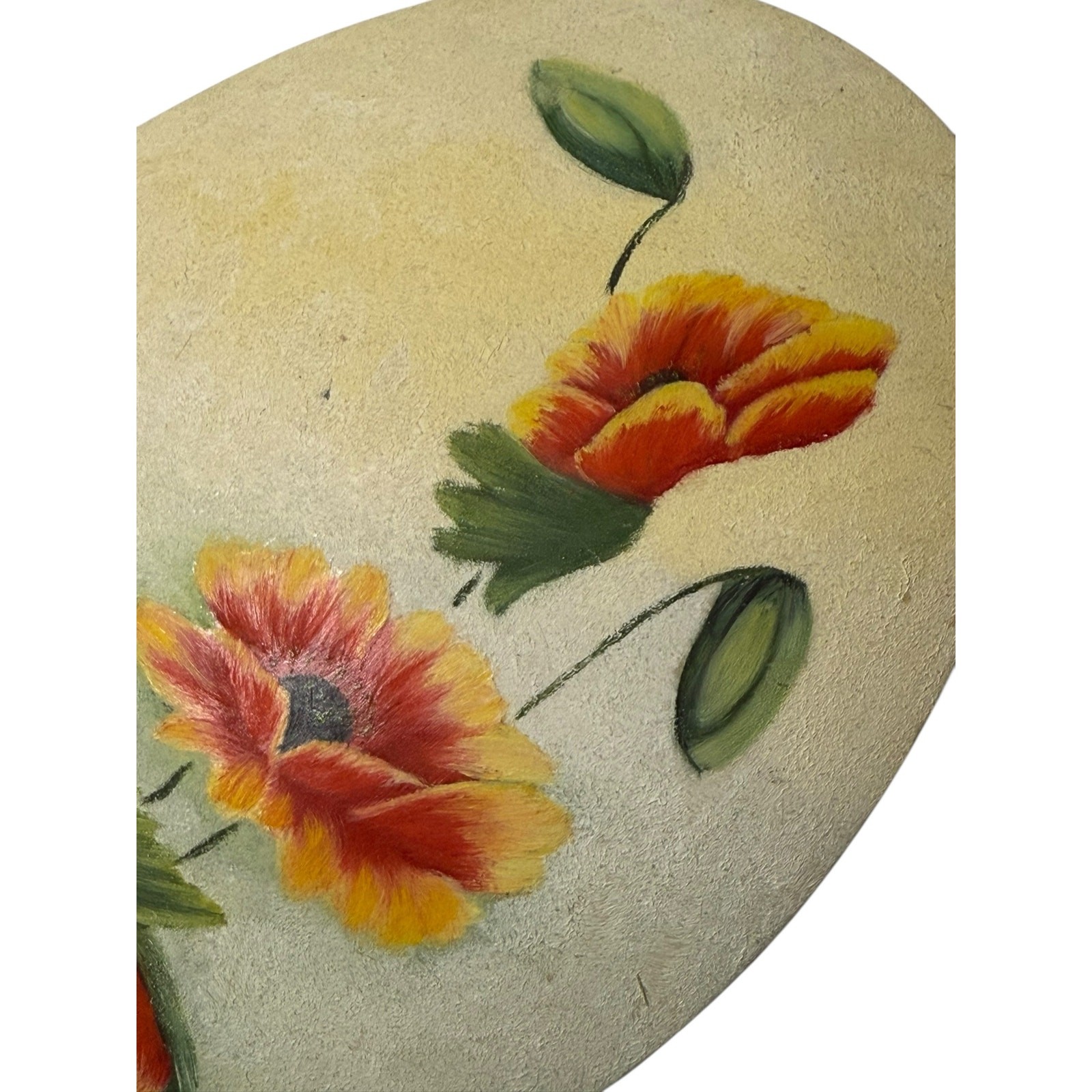 Oval Handpainted Floral Stone Tile Poppies Textured MCM Artwork Plaque Decor 8