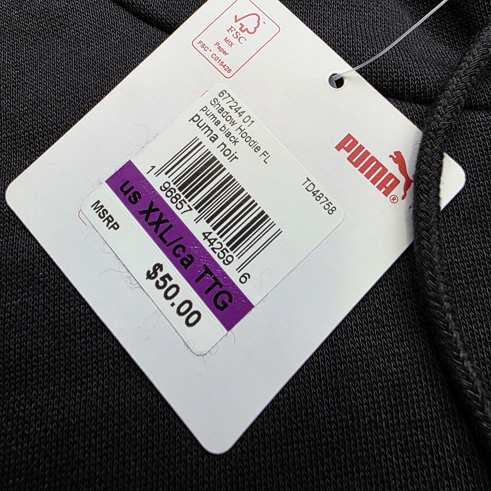 New - PUMA Men's 2XL Shadow Hoodie Fleece Big Logo Sweatshirt Black Comfort