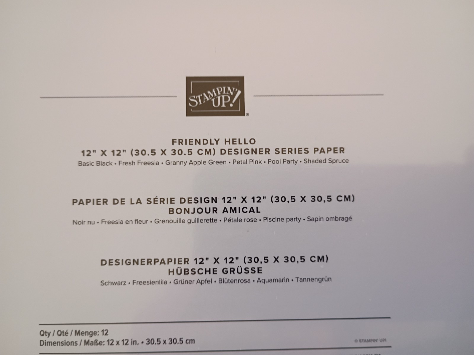 NEW Stampin' Up FRIENDLY HELLO DSP Designer Series Paper 12 x 12 - 12 sheets