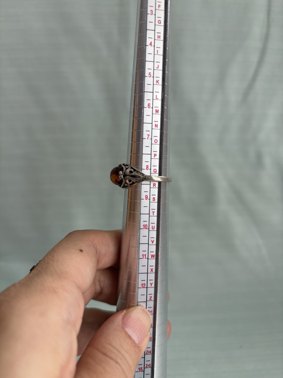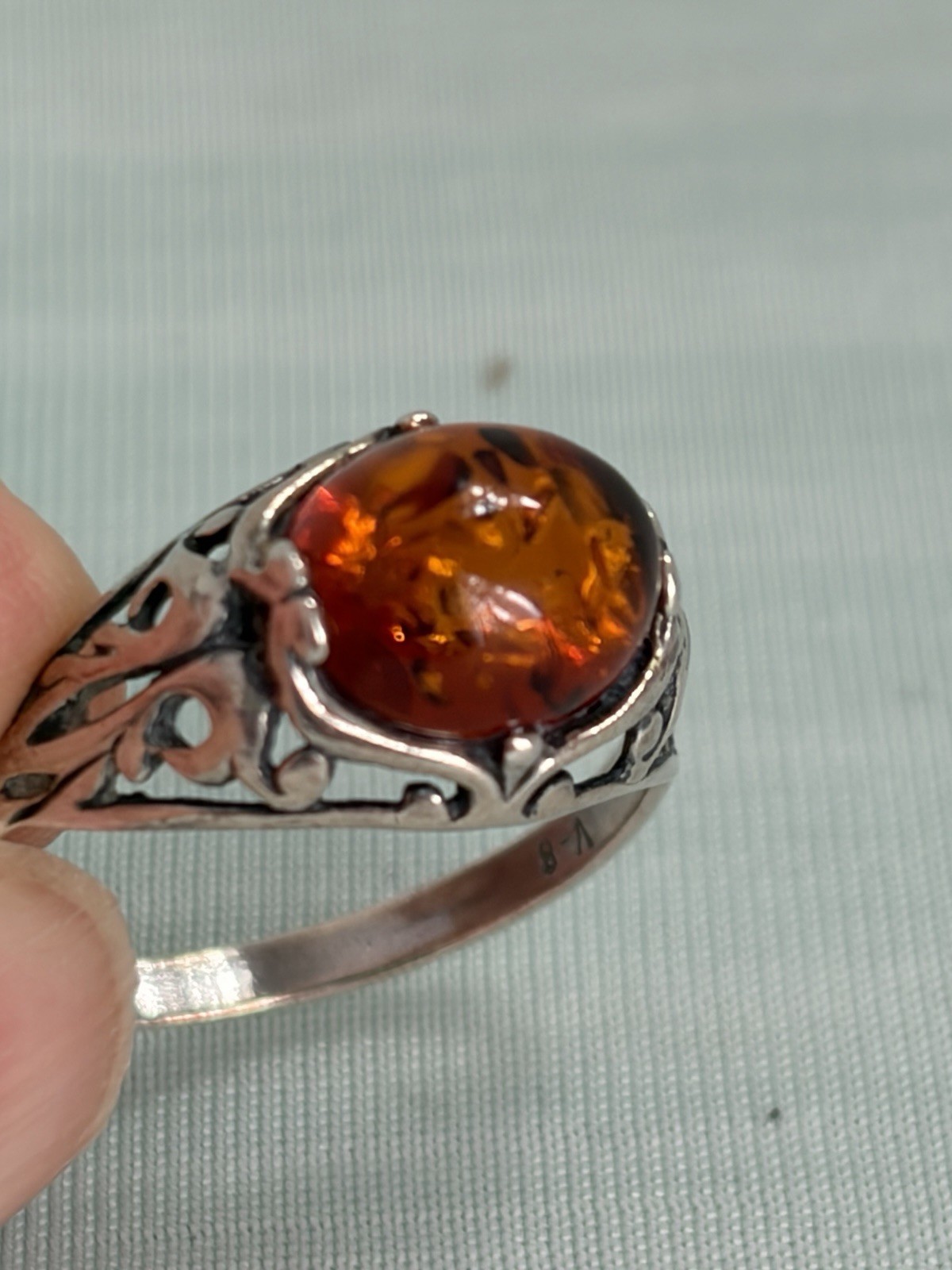как выглядит Vintage Poland Sterling Silver Oval Cabochon Baltic Amber Ring Size 8.25 фото