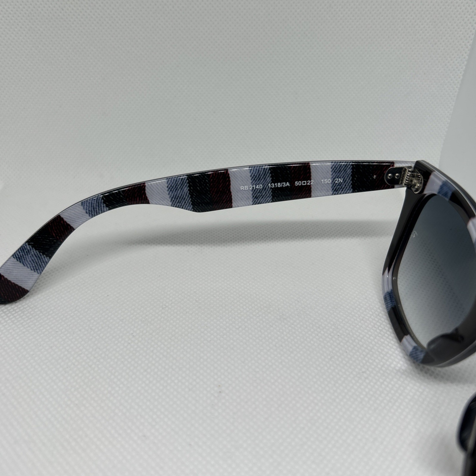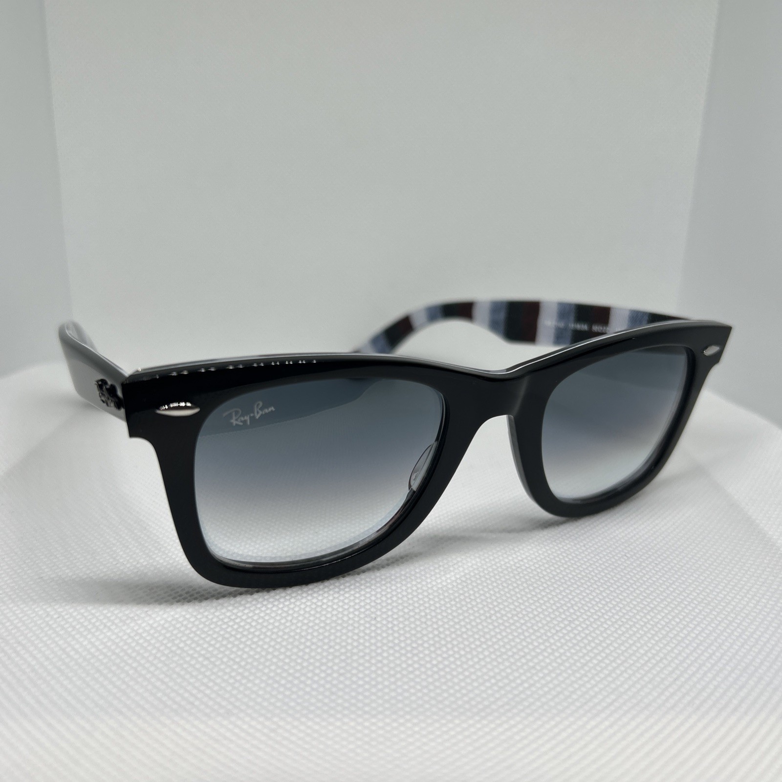 как выглядит Ray Ban Sunglasses Wayfarer RB2140 13183A Black Frame Grey Gradient Blue Lens фото