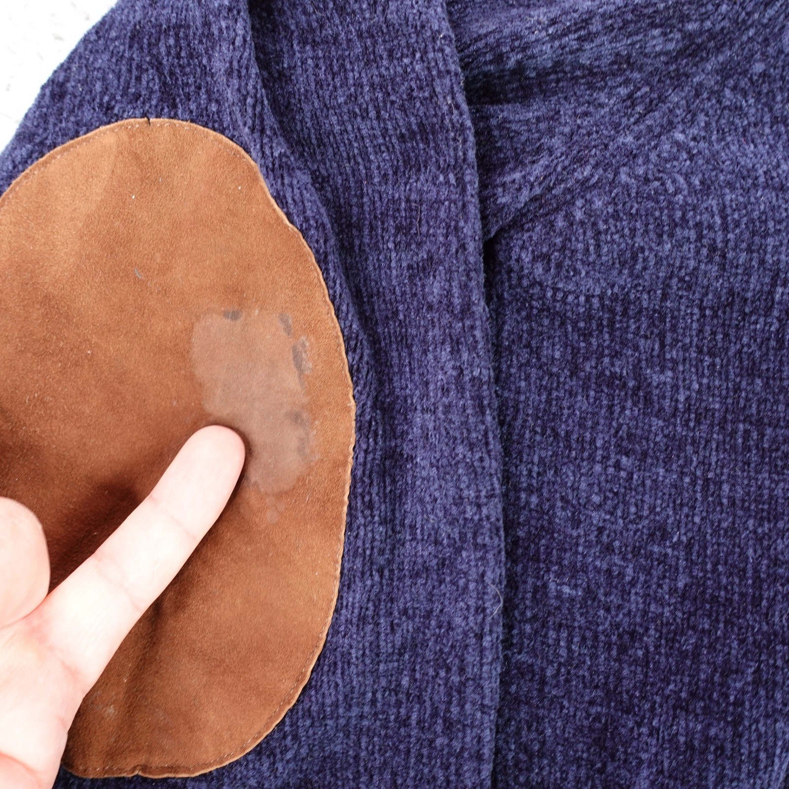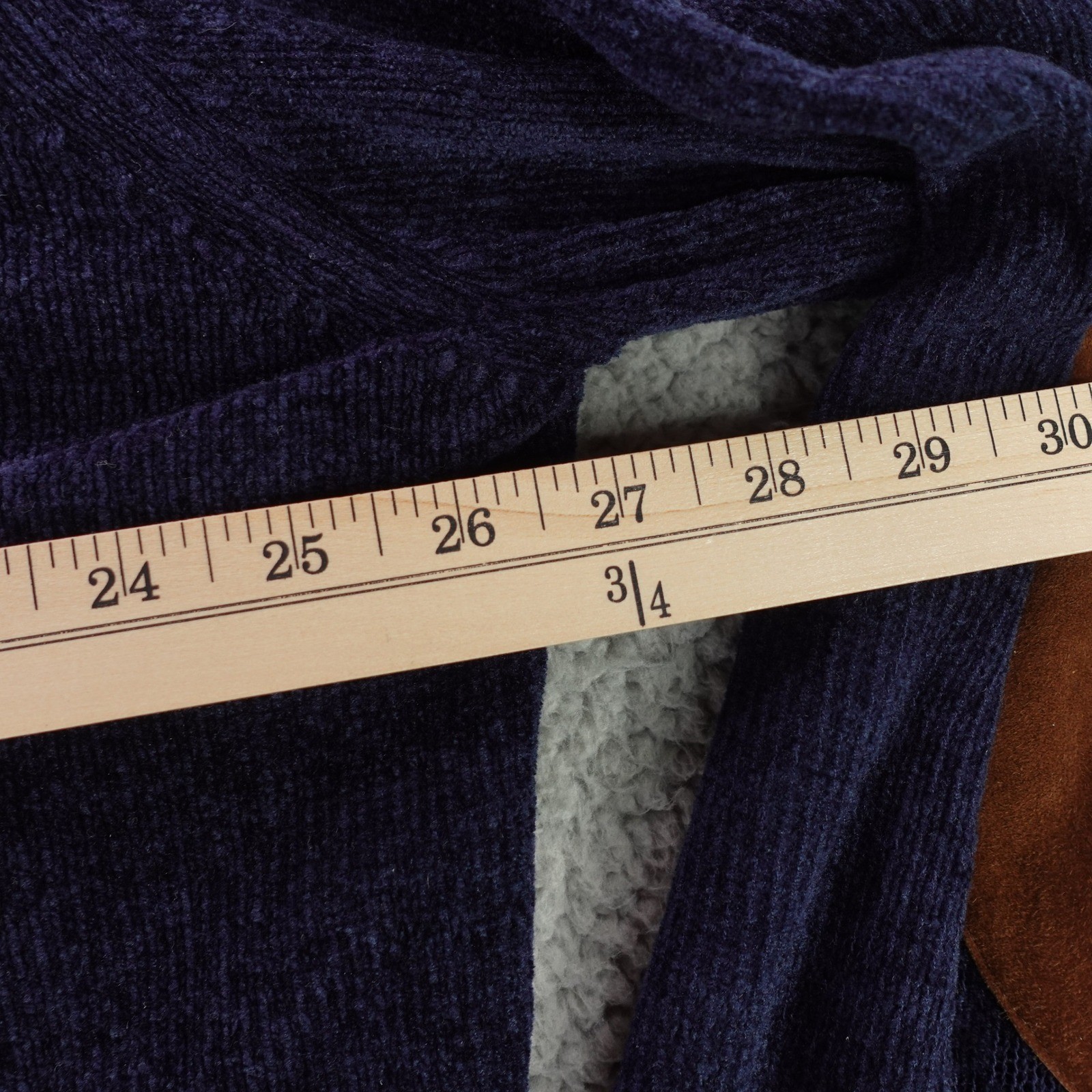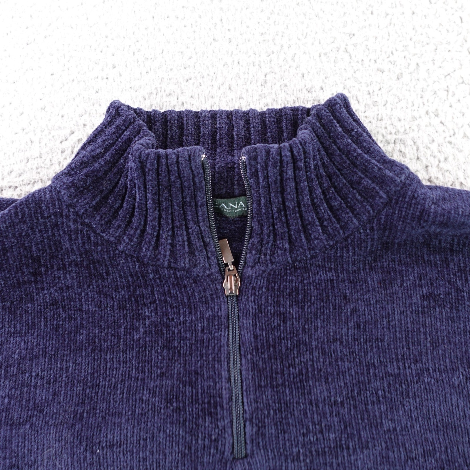как выглядит Canali Sportswear Mens Large Navy Blue Quarter Zip Pullover Suede Elbow Patch фото