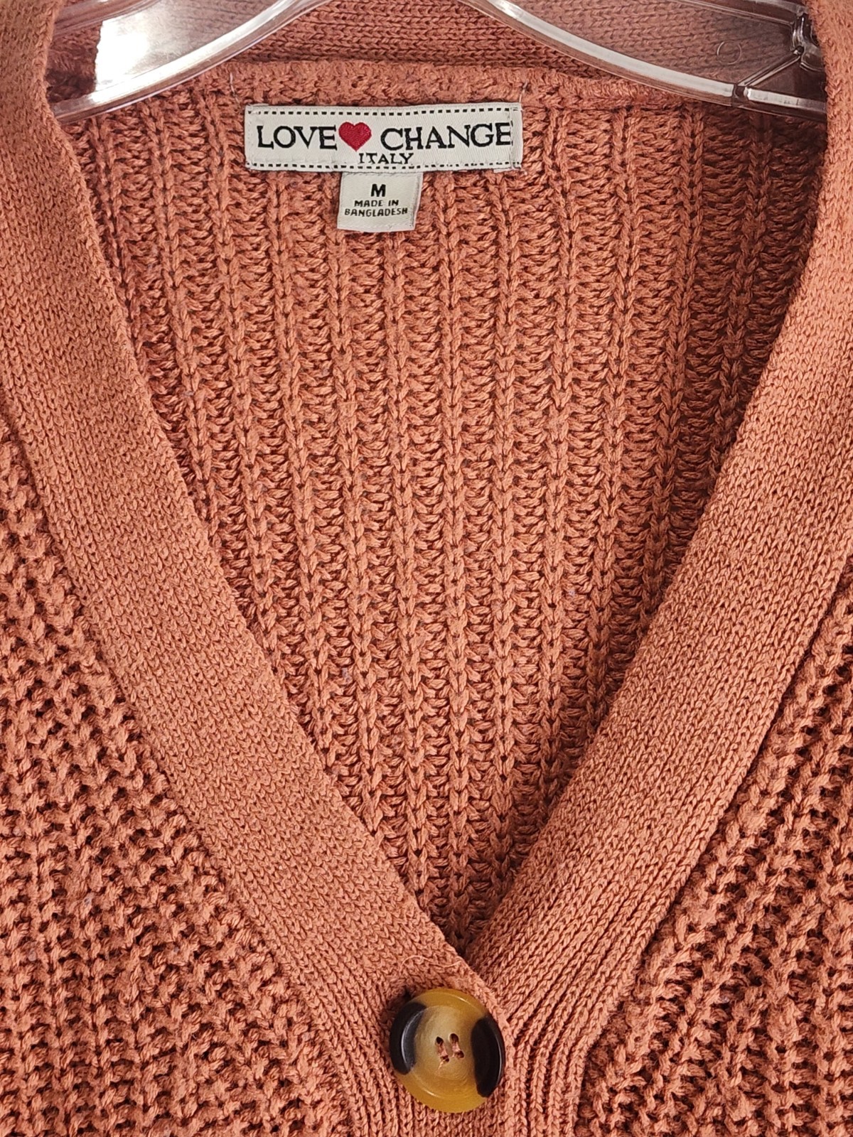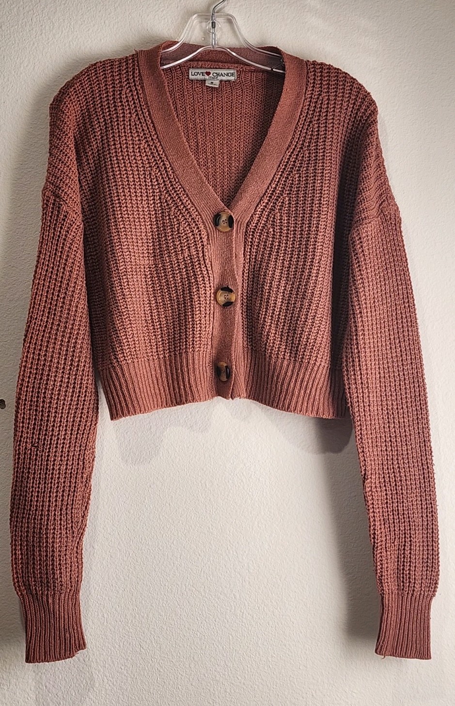 Love Change Italy Cropped Ribbed Cardigan Sweater Button Front V Neck Fall