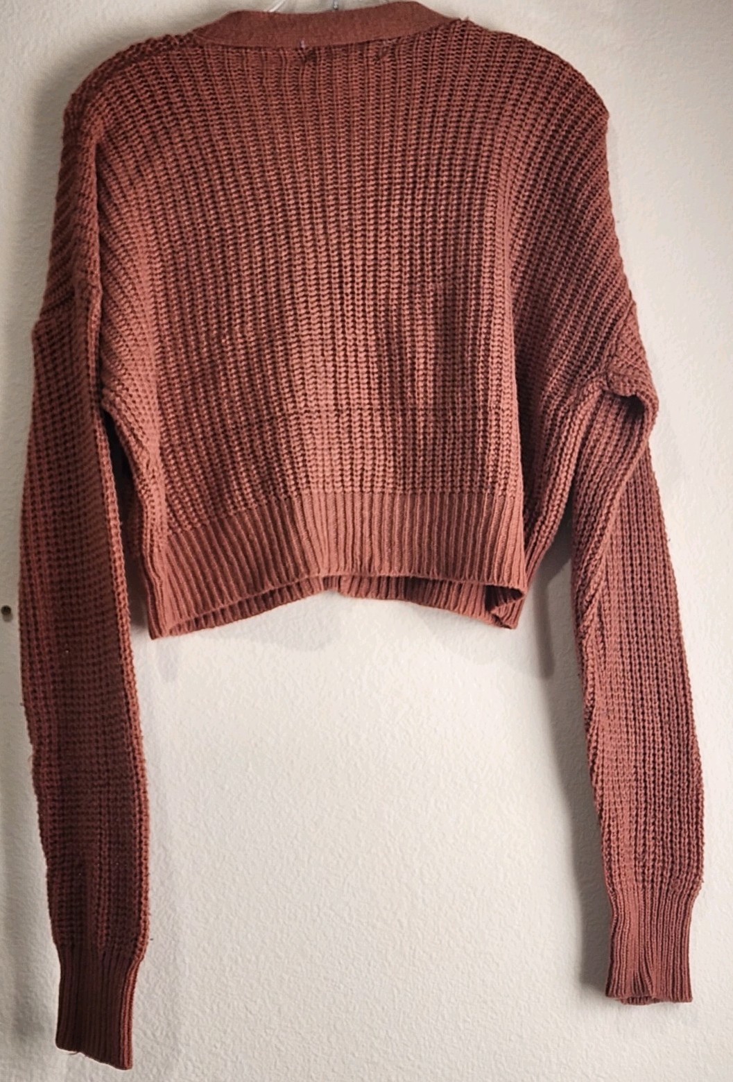 как выглядит Love Change Italy Cropped Ribbed Cardigan Sweater Button Front V Neck Fall фото