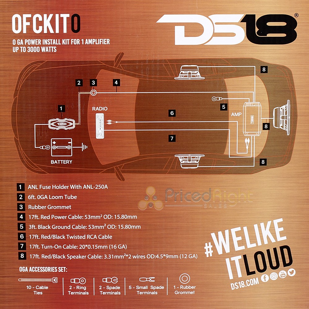DS18 OFC 0 Gauge Amp Kit Copper Wiring Installation Car Audio Install OFCKIT0