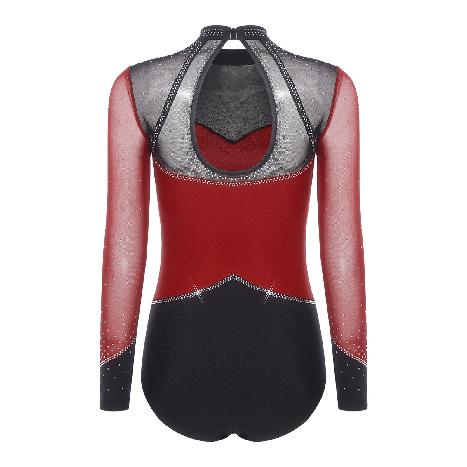 Women Unitard Mesh Patchwork Jumpsuit Leotard Romper Rhinestone Back Cutout